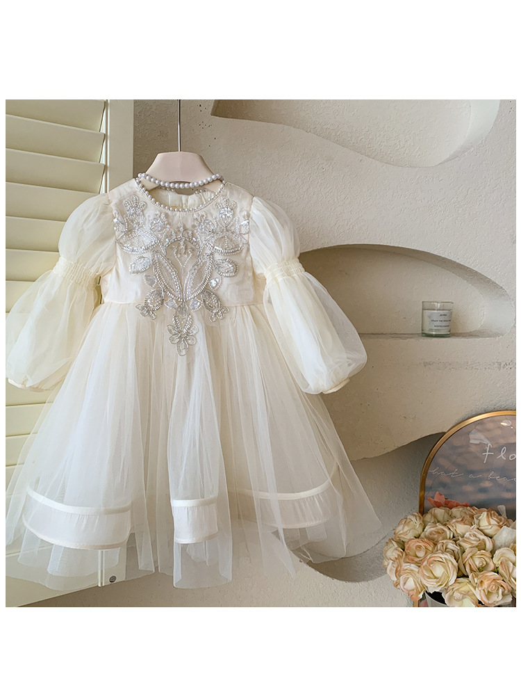 소녀의 공주 원피스 하이 엔드 꽃 소녀의 생일 원피스 서양식 어린이 코트 스타일 진주 원피스
