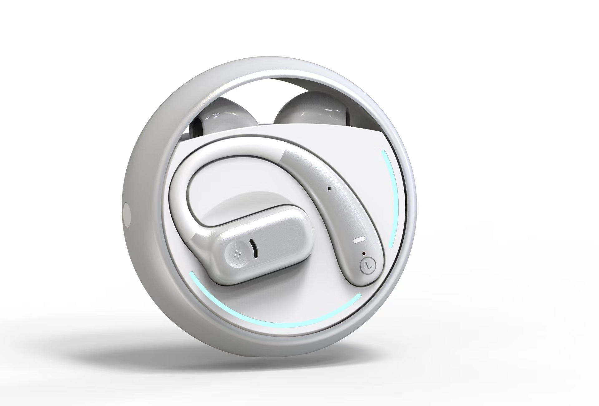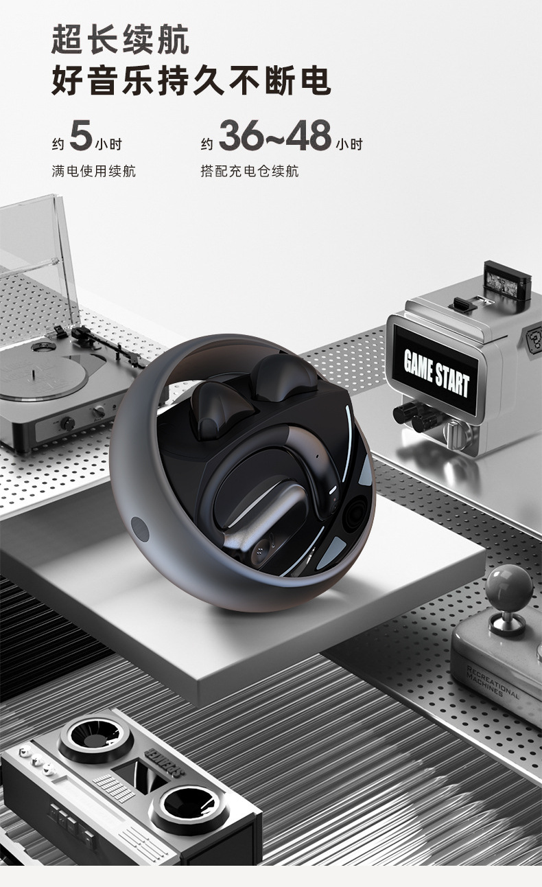 국경 간 핫 세일 OWS 무선 블루투스 헤드셋 노이즈 감소 회전 가능한 더블 이어 교수형 모션 긴 내구성 하프 인 헤드셋스토어 가기