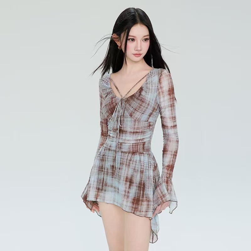 2025 새로운 폭발 보수적 인 뚱뚱한 소녀 긴 소매 육체 덮개 슬림 우아한 온천 소매 수영복 여성스토어 가기