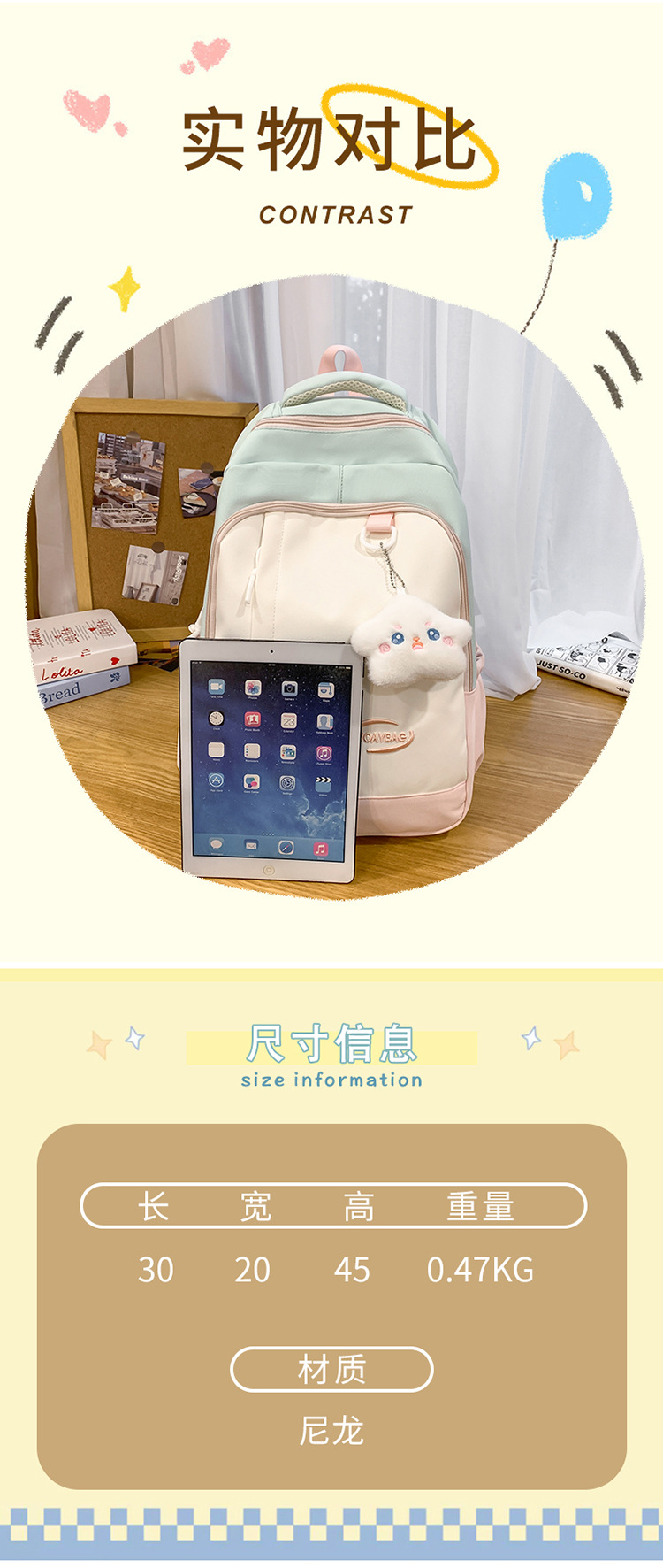 학생 Schoolbag 새로운 캐주얼 학생 배낭 대비 컬러 중학교 학교 가방 여성의 일본 대용량 접합 배낭스토어 가기