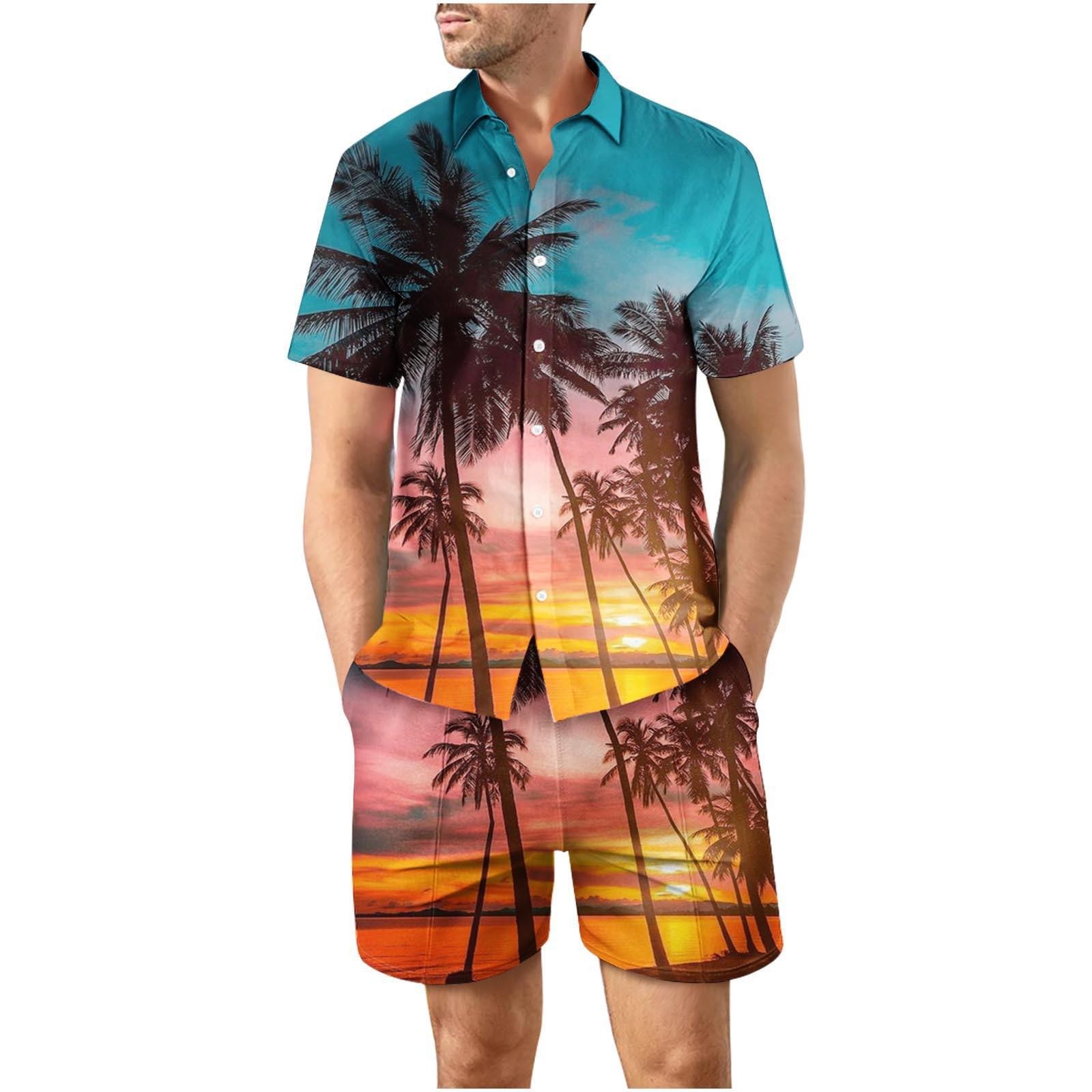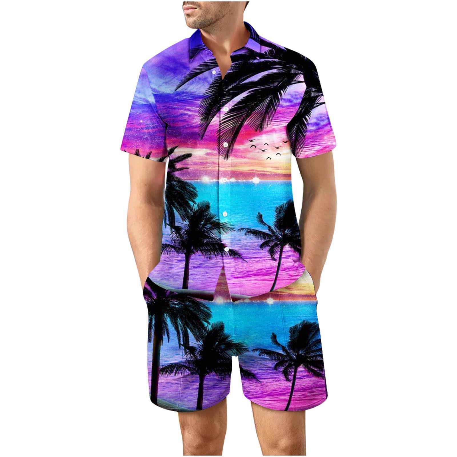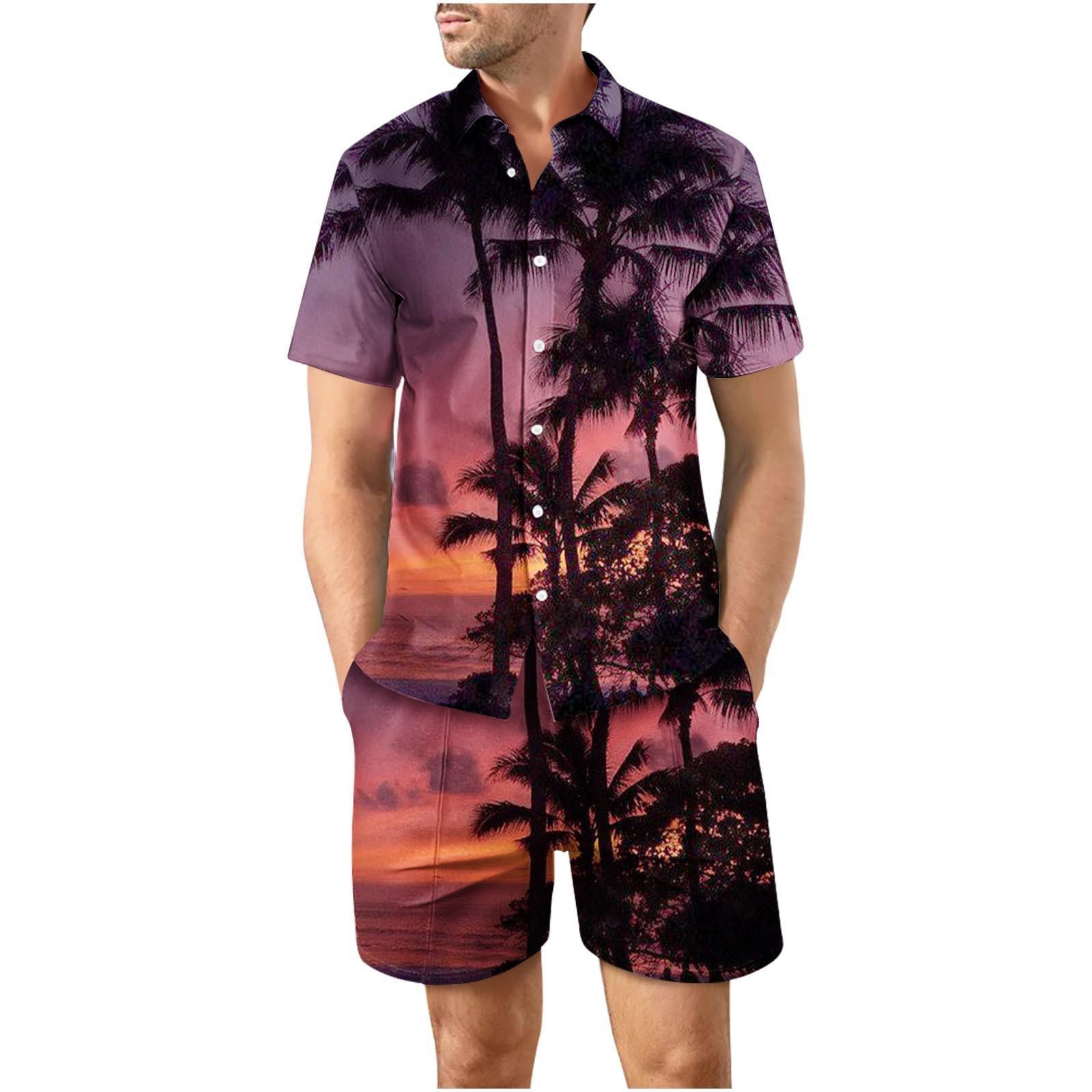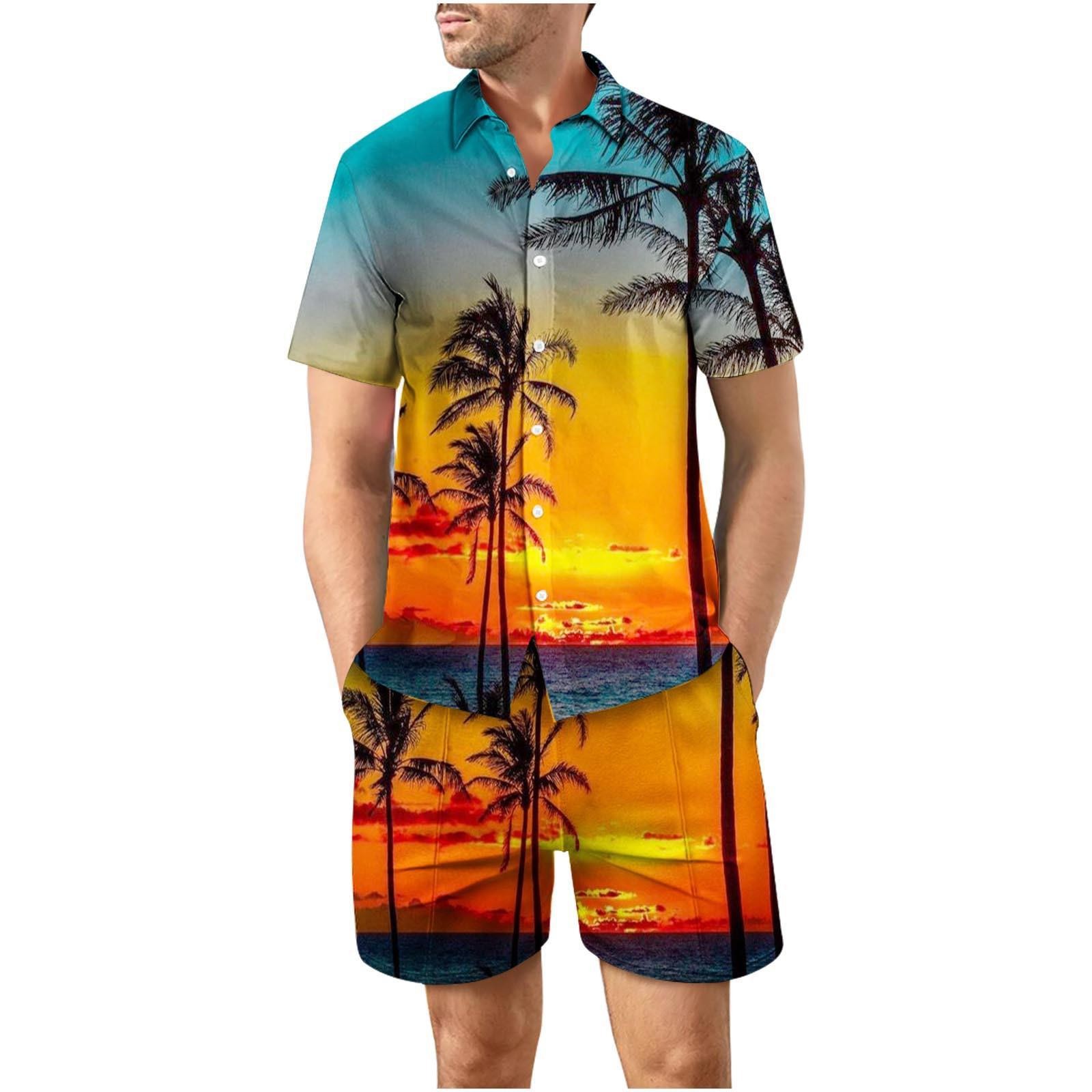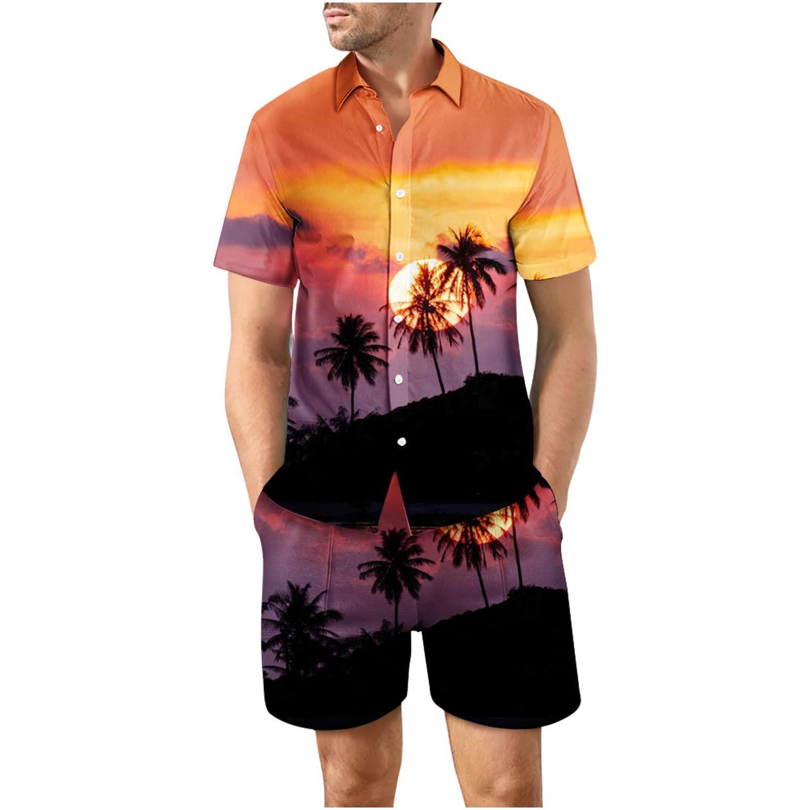 유럽과 미국의 대외 무역 해변 야외 남성 캐주얼 패션 3D 디지털 인쇄 짧은 소매 셔츠 느슨한 남성 셔츠