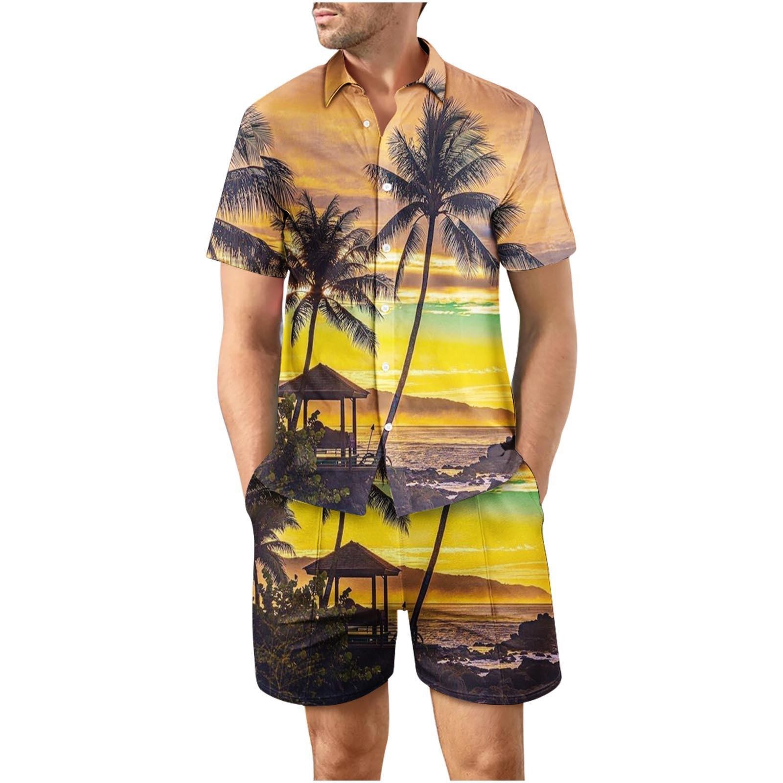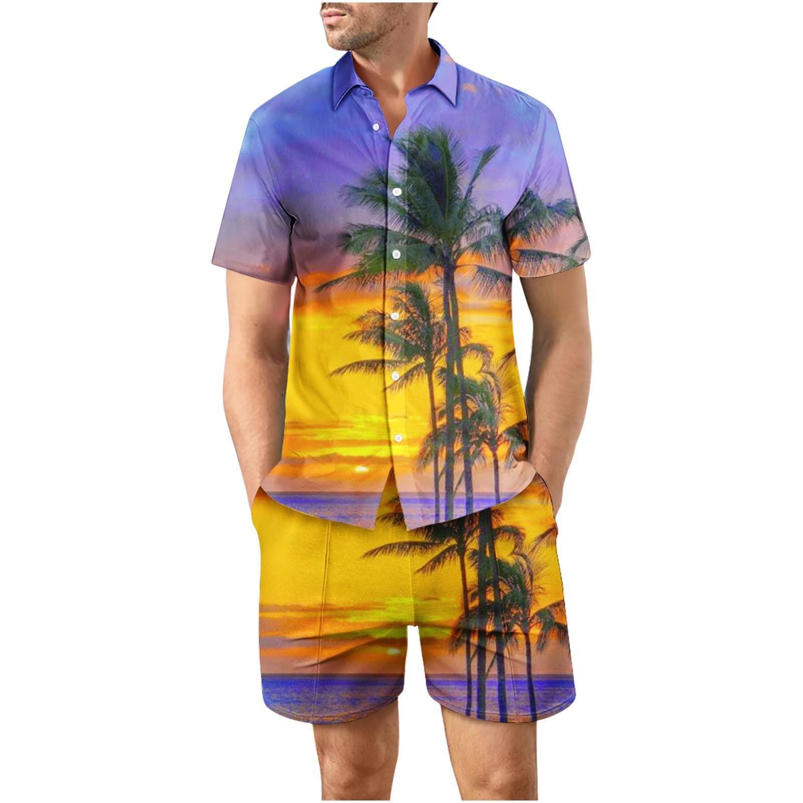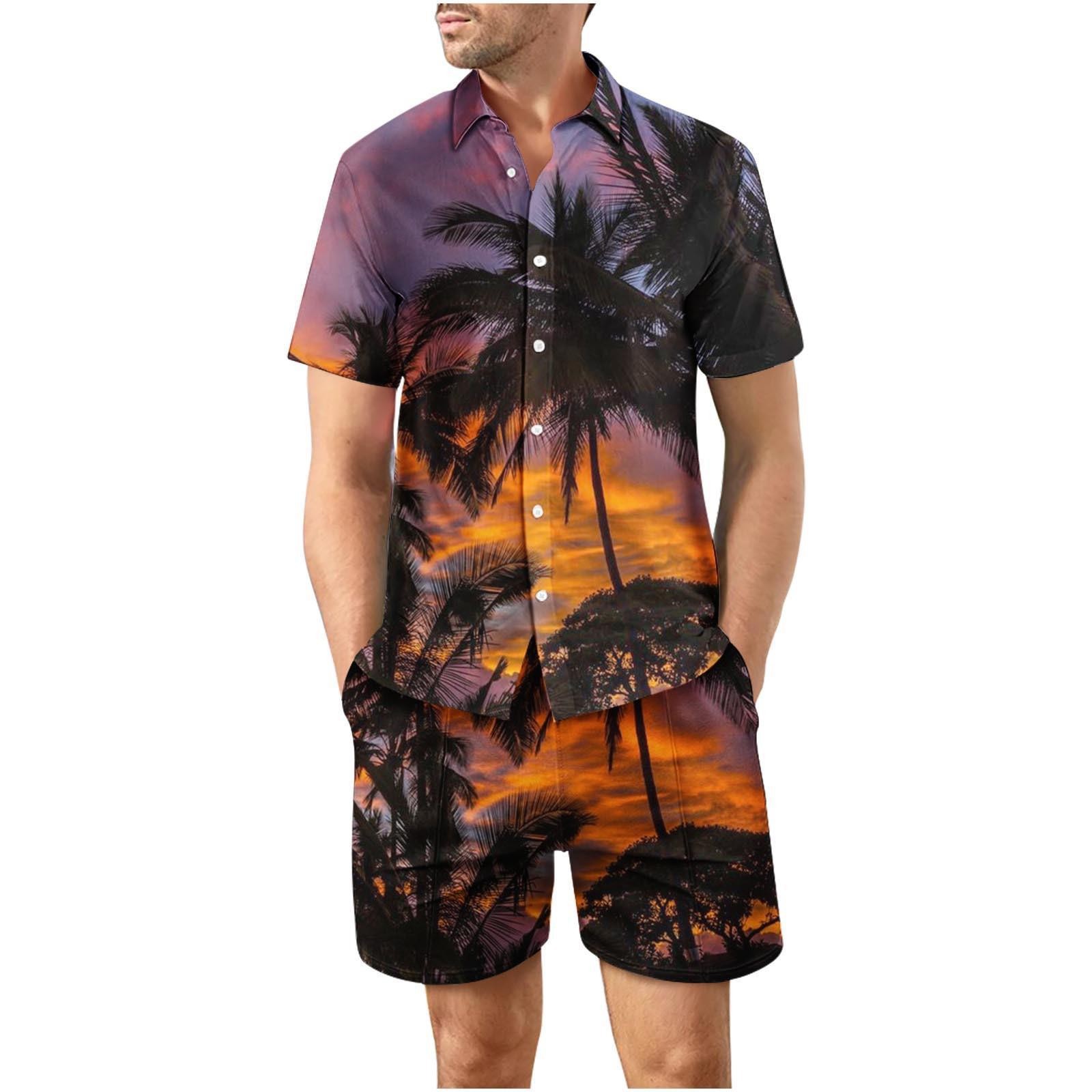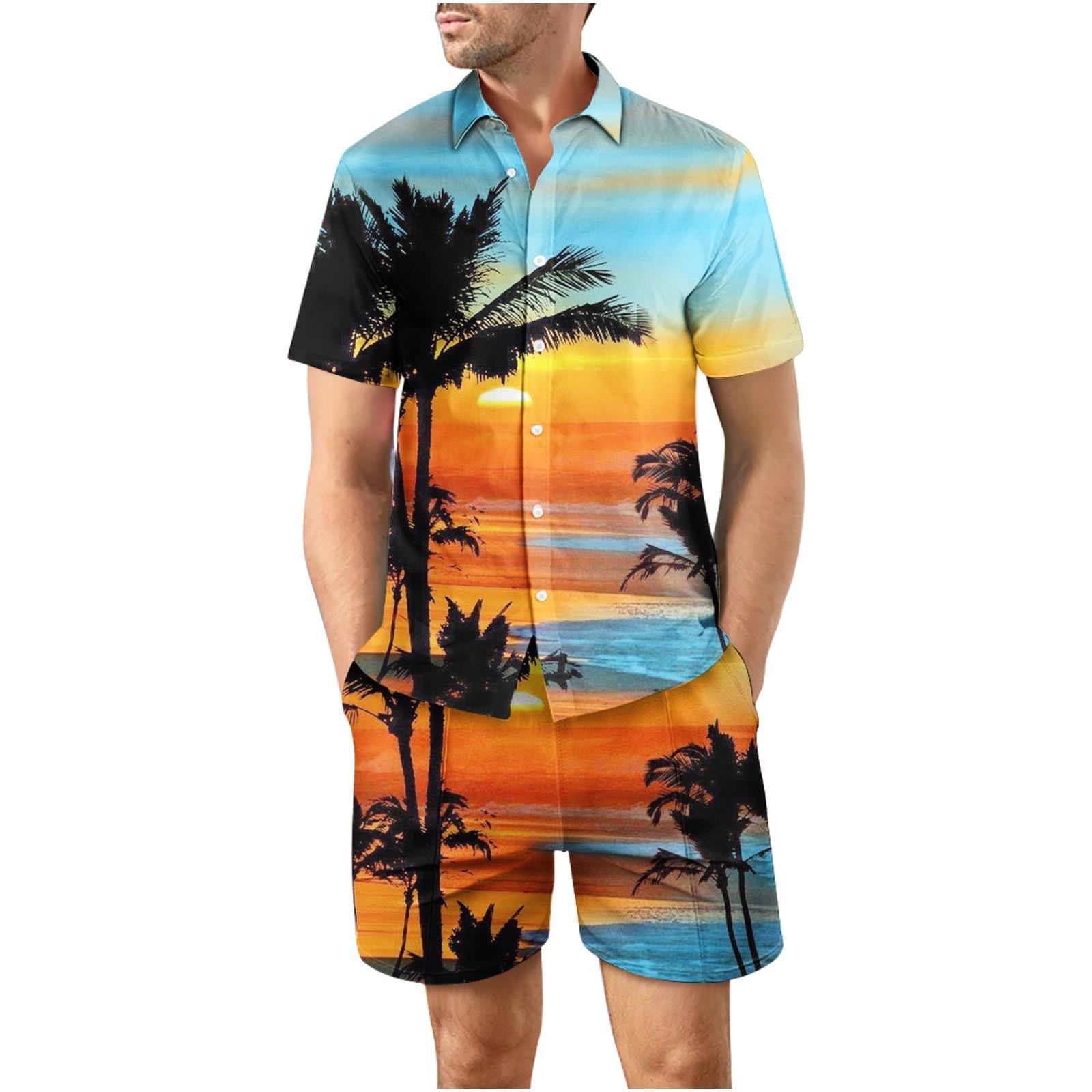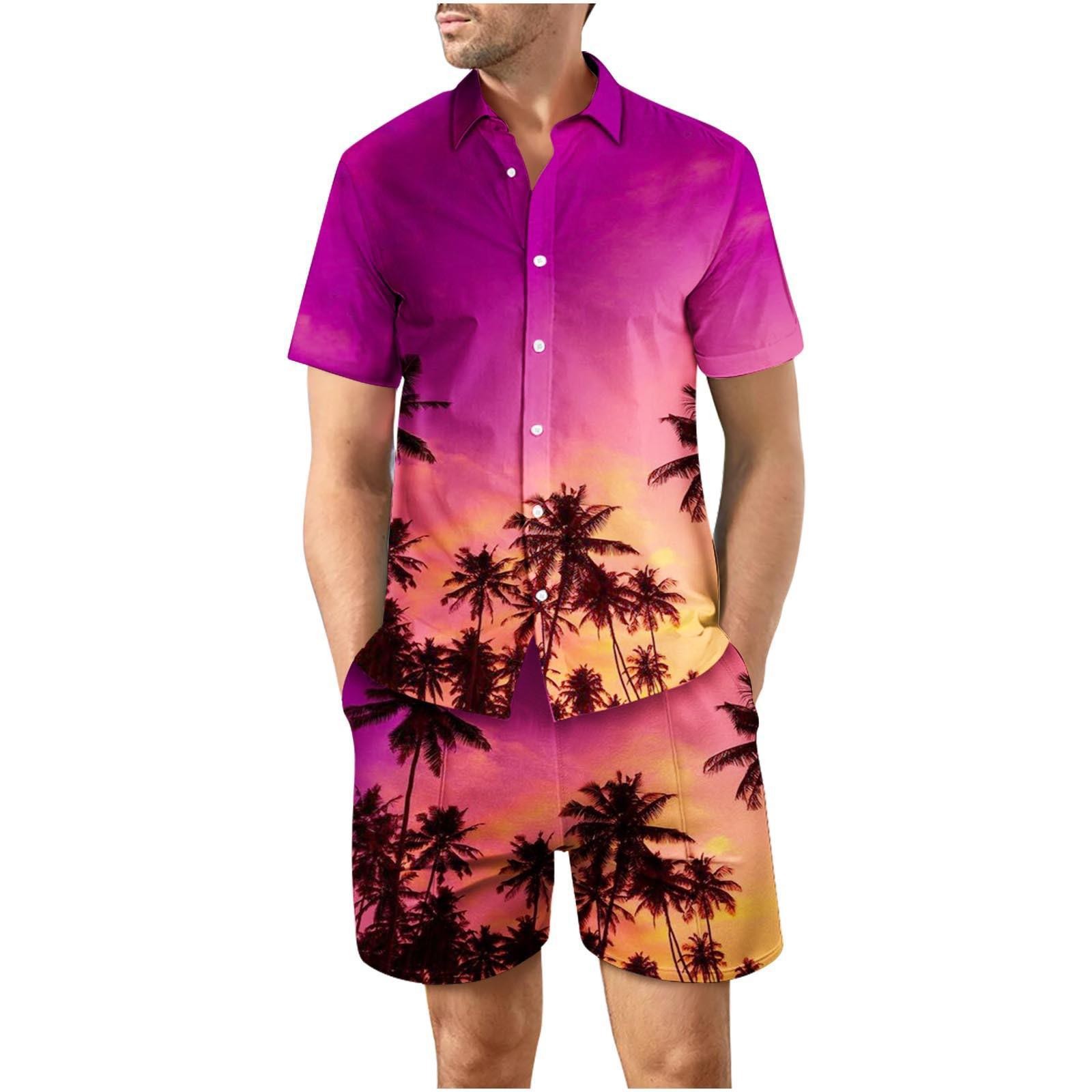 유럽과 미국의 대외 무역 해변 야외 남성 캐주얼 패션 3D 디지털 인쇄 짧은 소매 셔츠 느슨한 남성 셔츠
