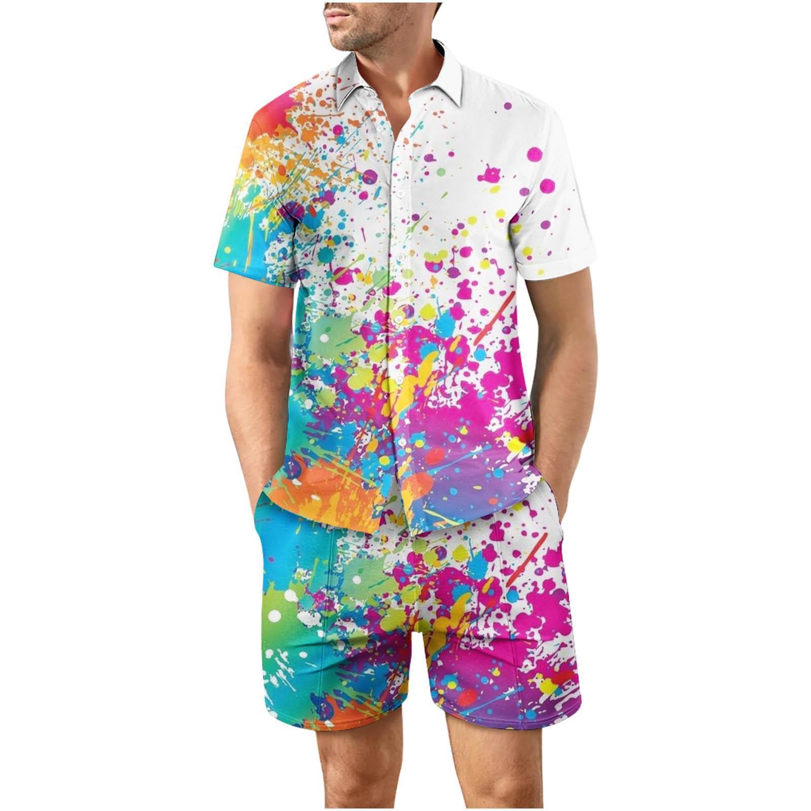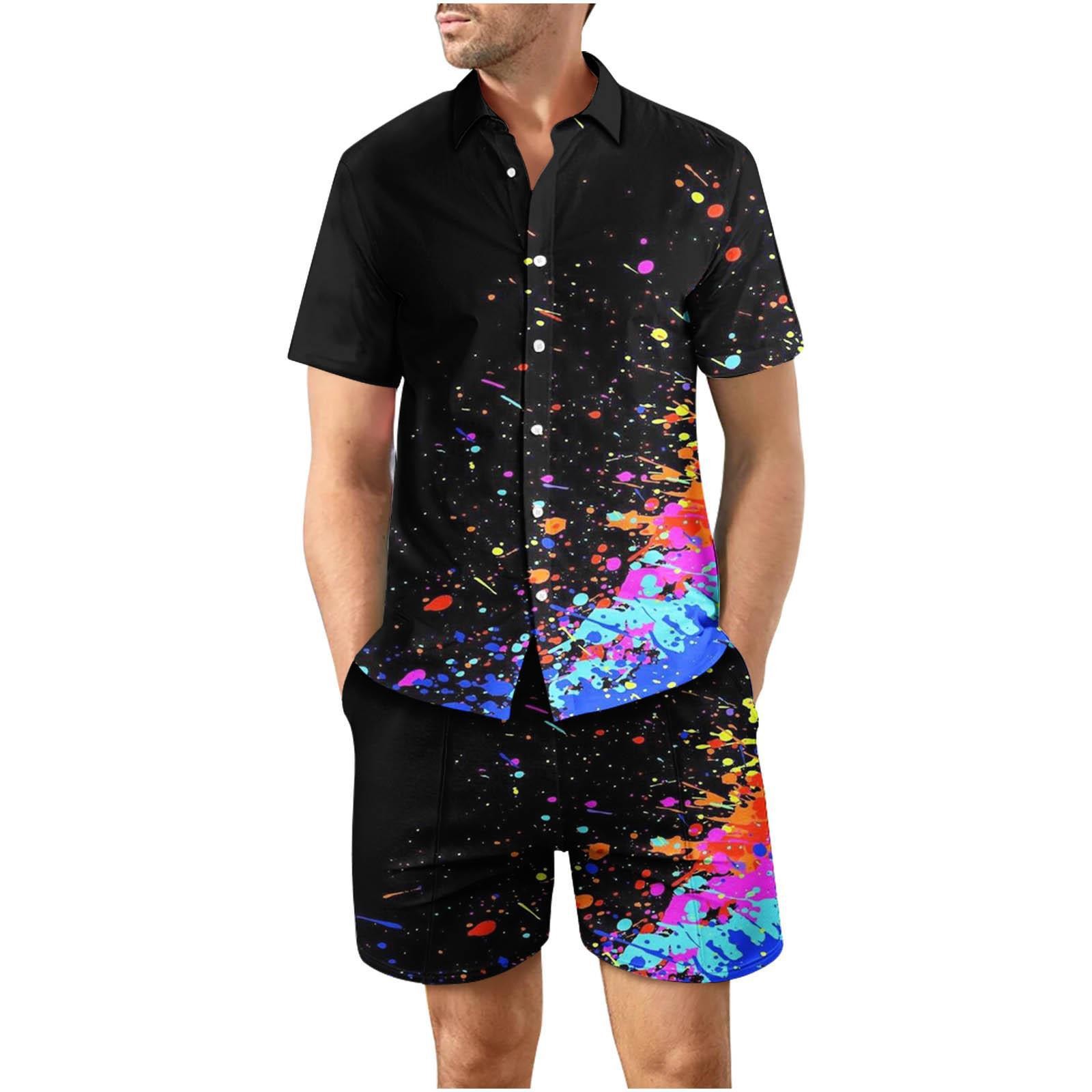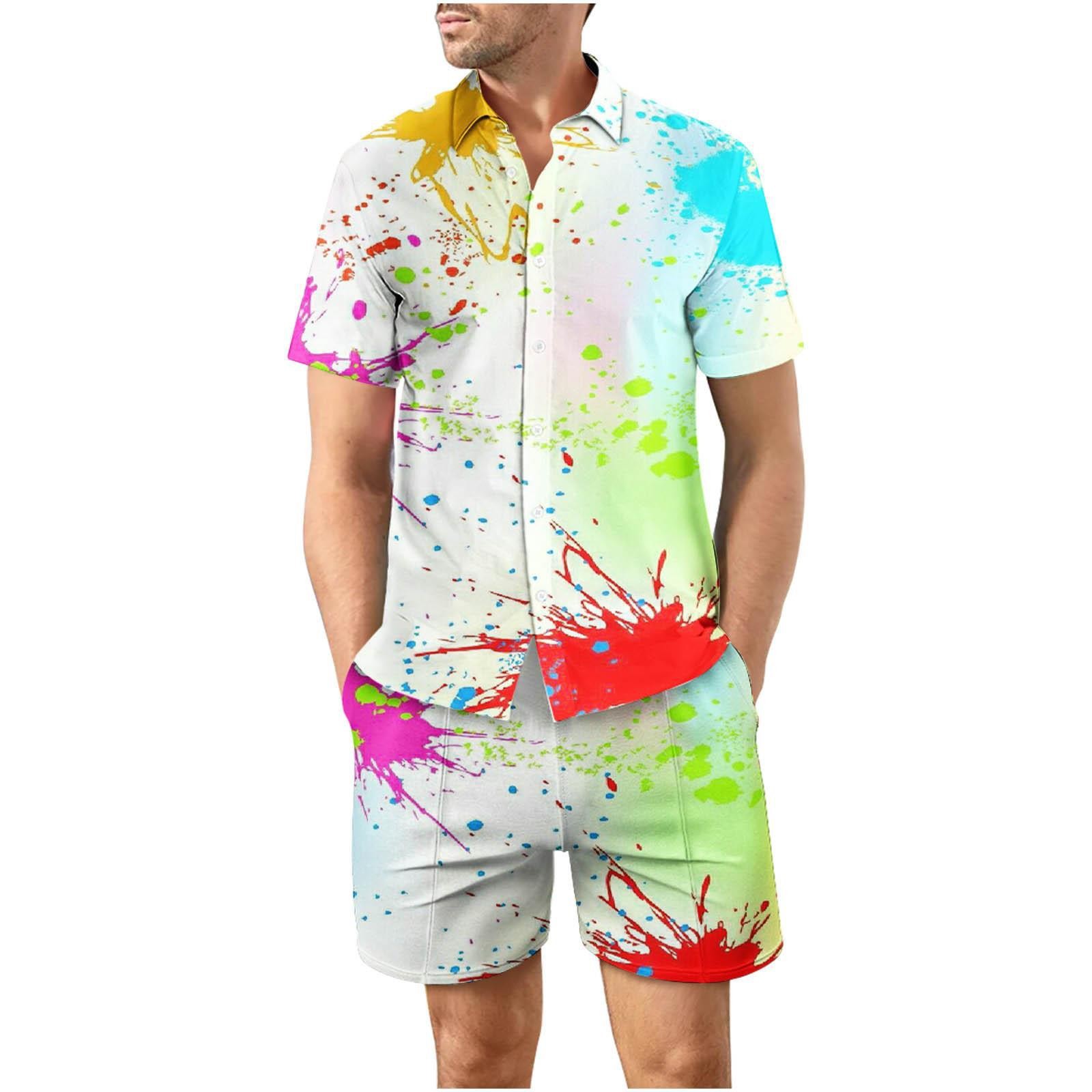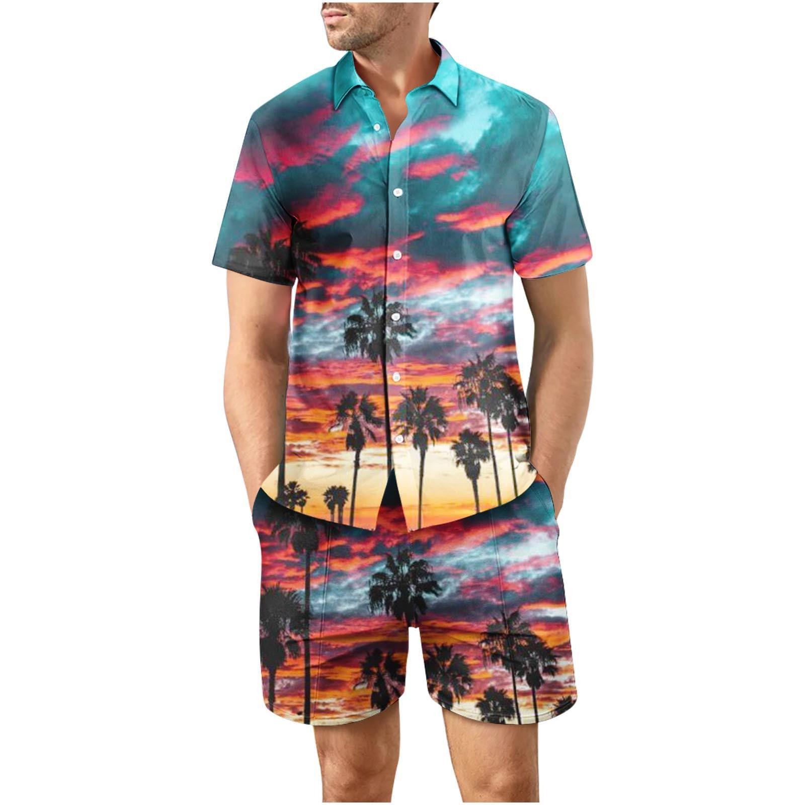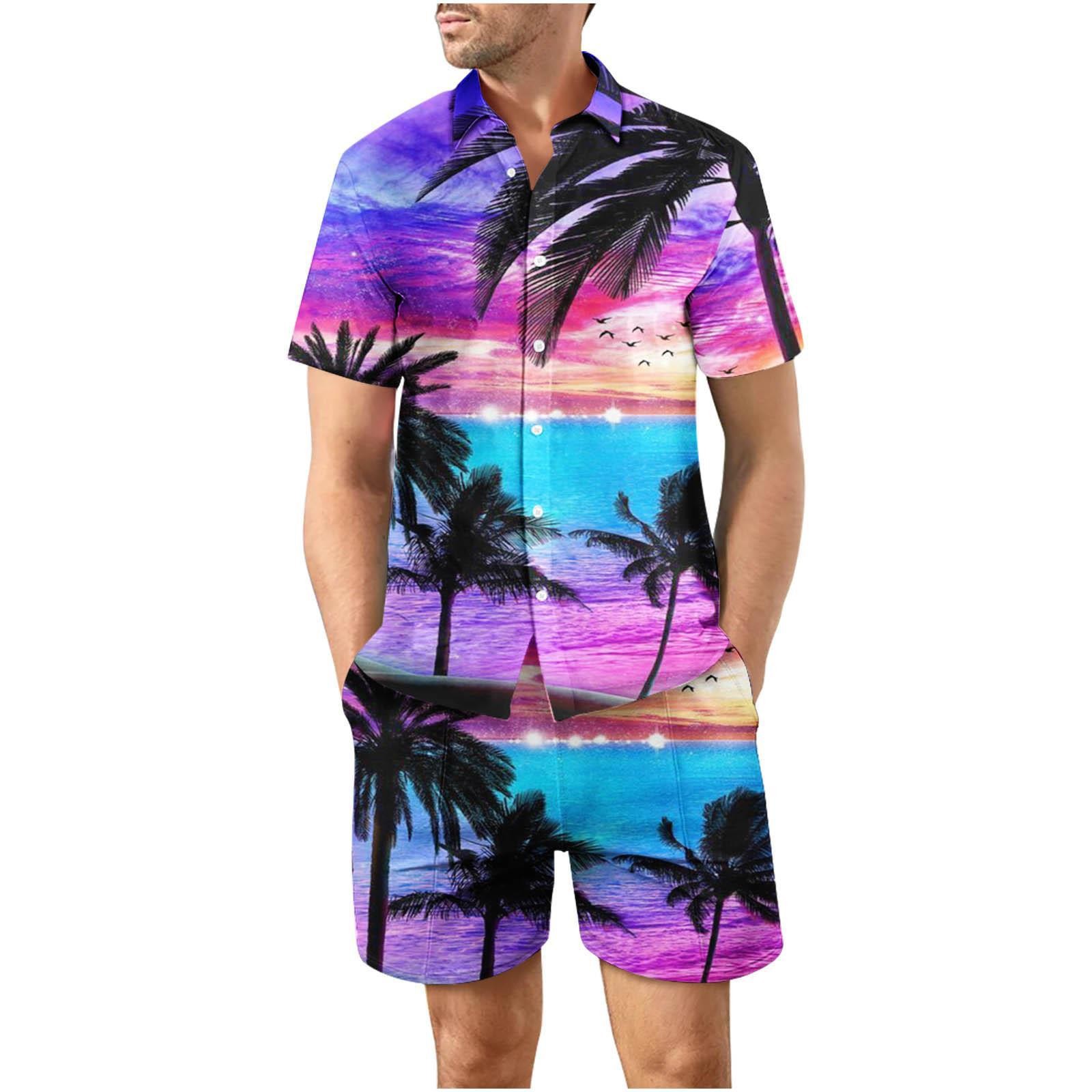 유럽과 미국의 대외 무역 해변 야외 남성 캐주얼 패션 3D 디지털 인쇄 짧은 소매 셔츠 느슨한 남성 셔츠