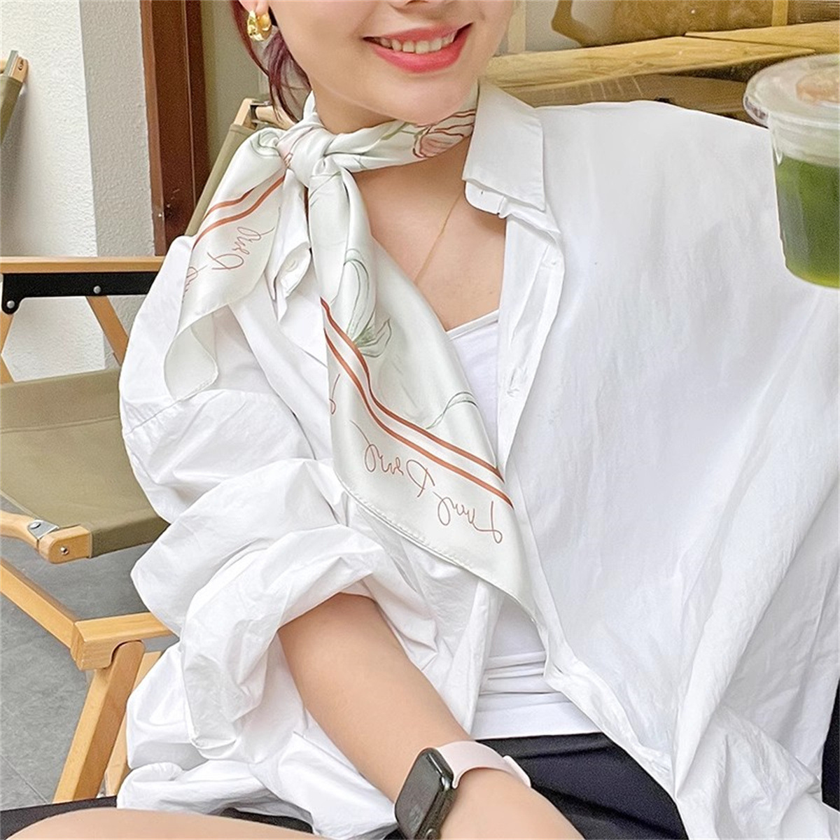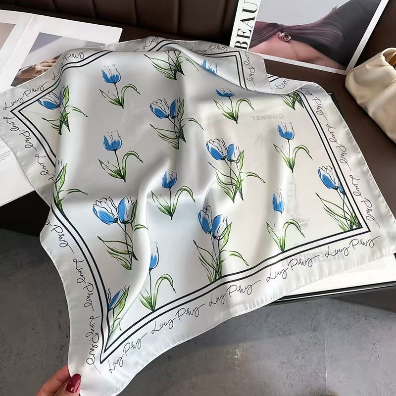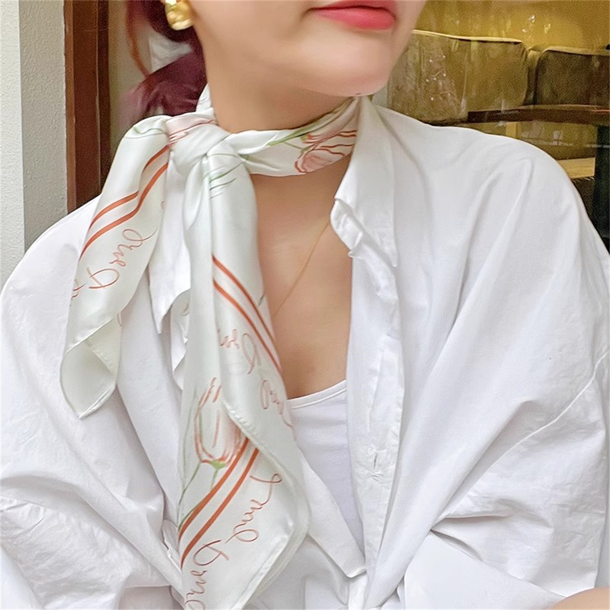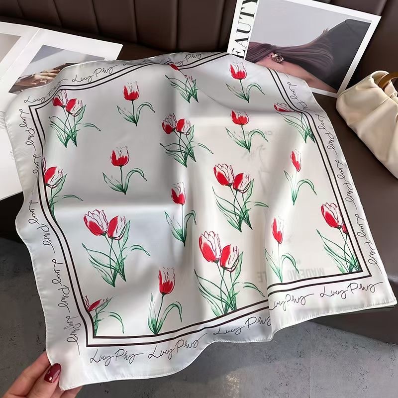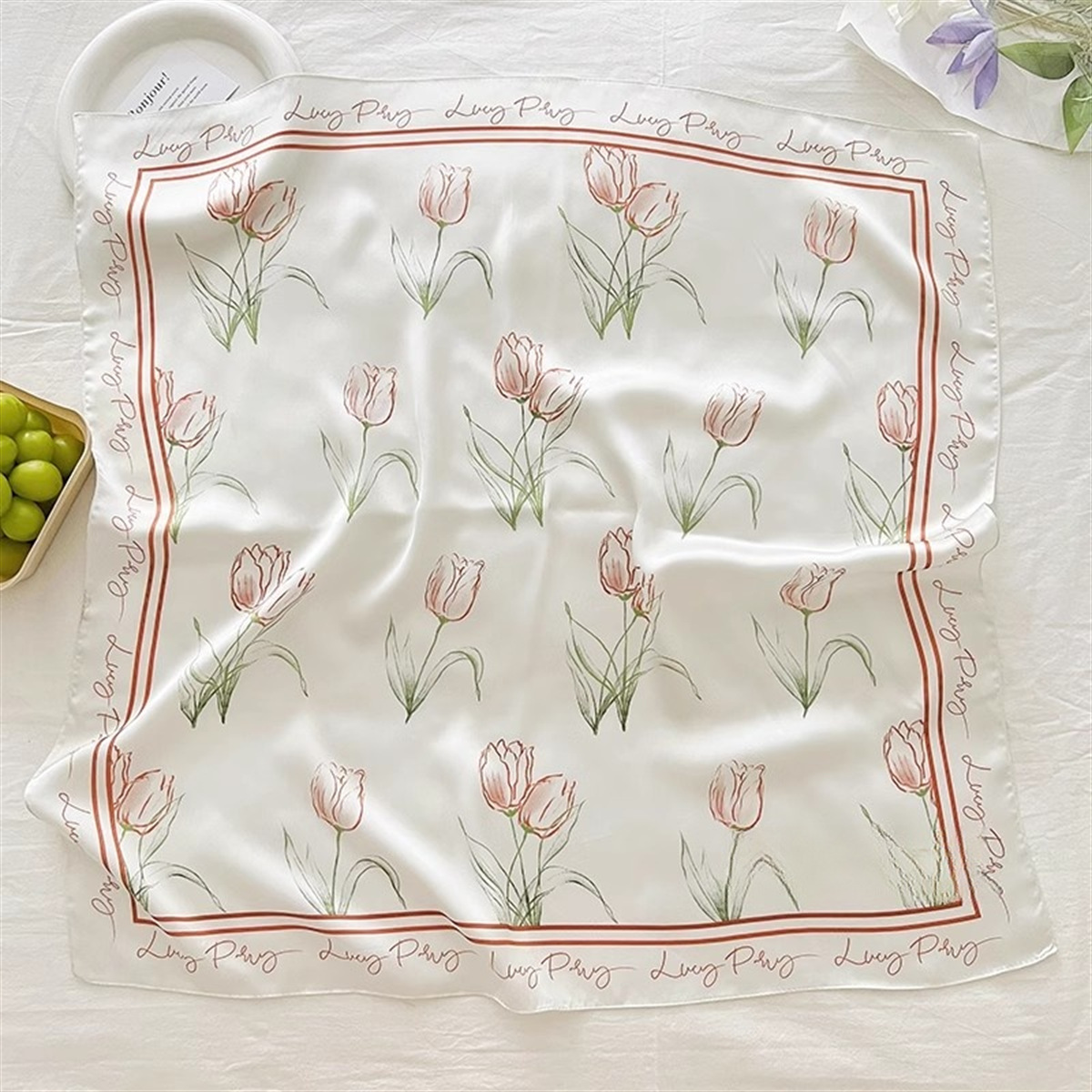 튤립 스카프 그림 낭만적 인 부드러운 예술적 신선한 스퀘어 스카프 머리띠 장식 스카프 Instagram 패션 여름과 가을스토어 가기