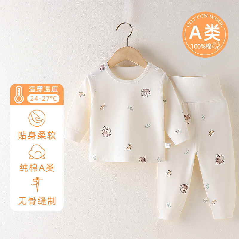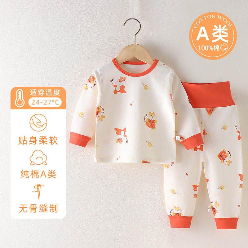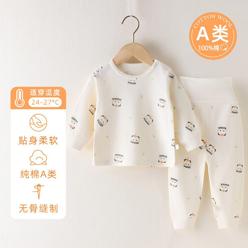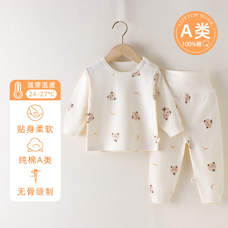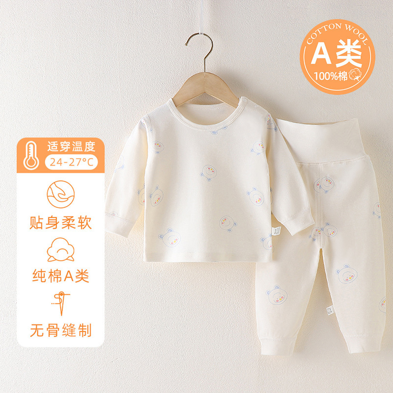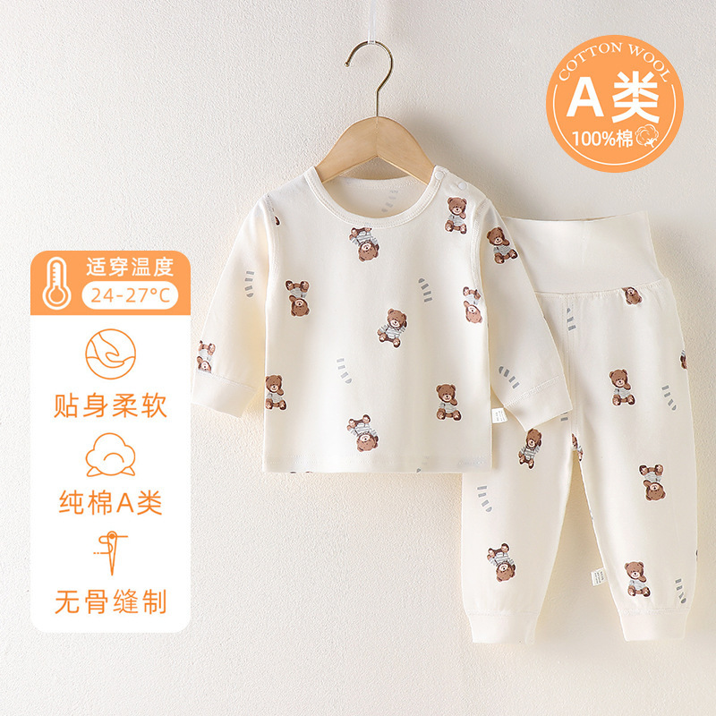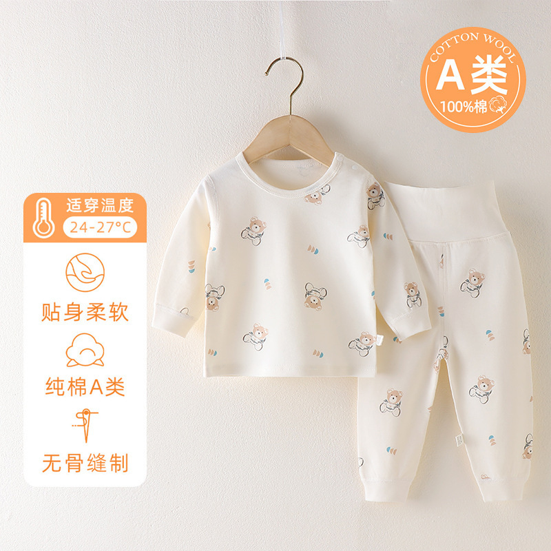 아기의 높은 허리 배꼽 보호 가을 옷 가을 바지 분할 세트 순수 면 뼈없는 아기의 봄과 가을 속옷 기본 옷