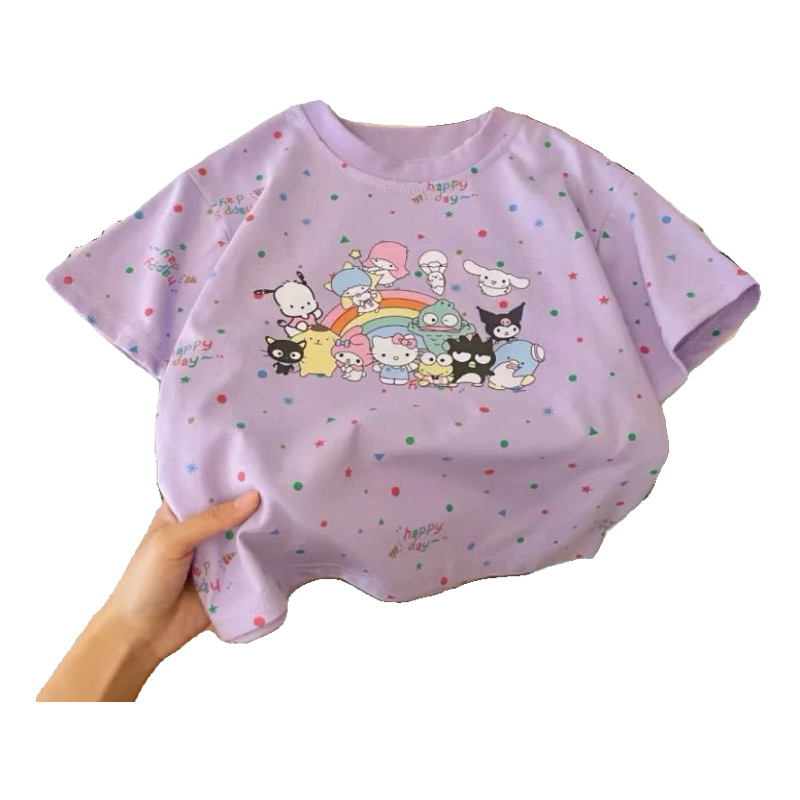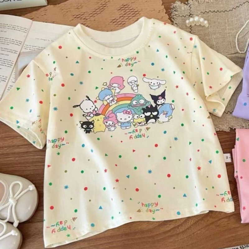 [점포 판매] 여자 반소매 티셔츠 여름 면화 2024 새 한국판 느슨한 어린이 만화 전체 인쇄