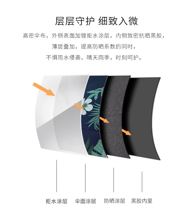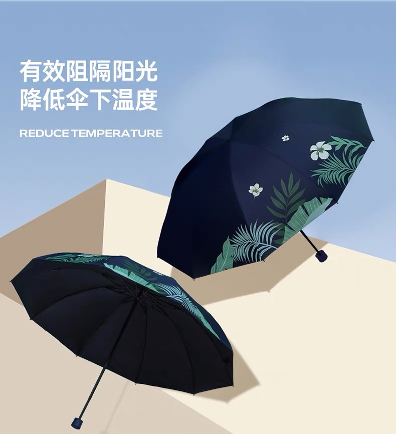 파라다이스 우산 33963E 황혼의 야생 노래 증가 강화 더블 블랙 고무 선 스크린 우산 접기 우산 인쇄 가능한 로고