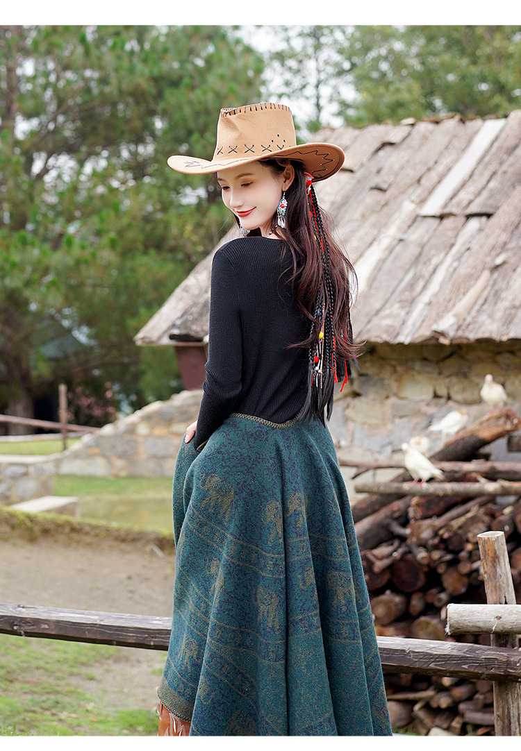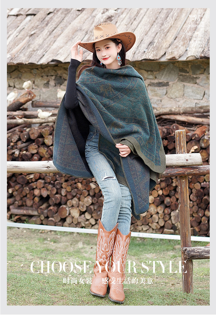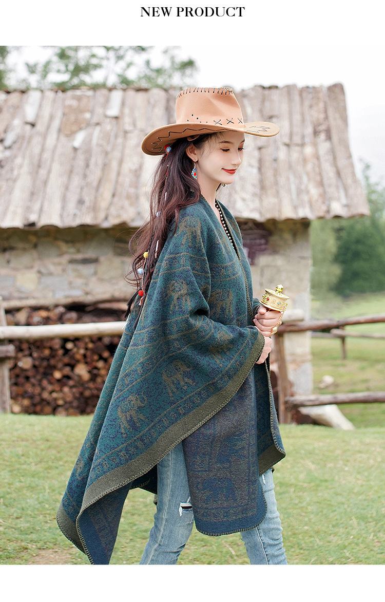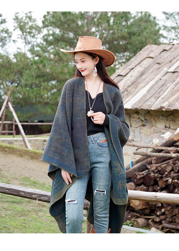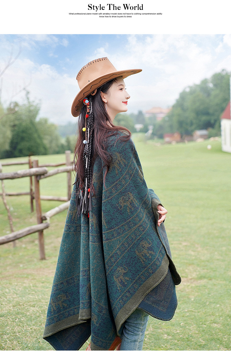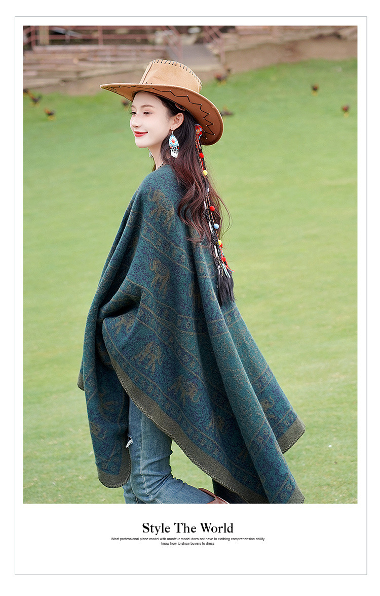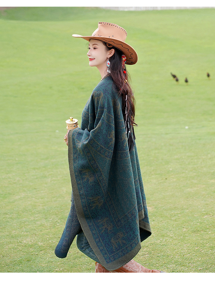 에어컨이 달린 목도리 여성 니트 목도리 휴가 사진 민족 스타일을 입고 티베트 신장 윈난 관광 케이프 착용