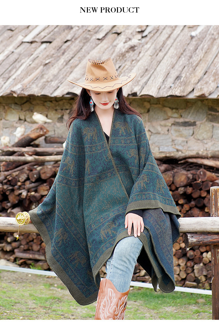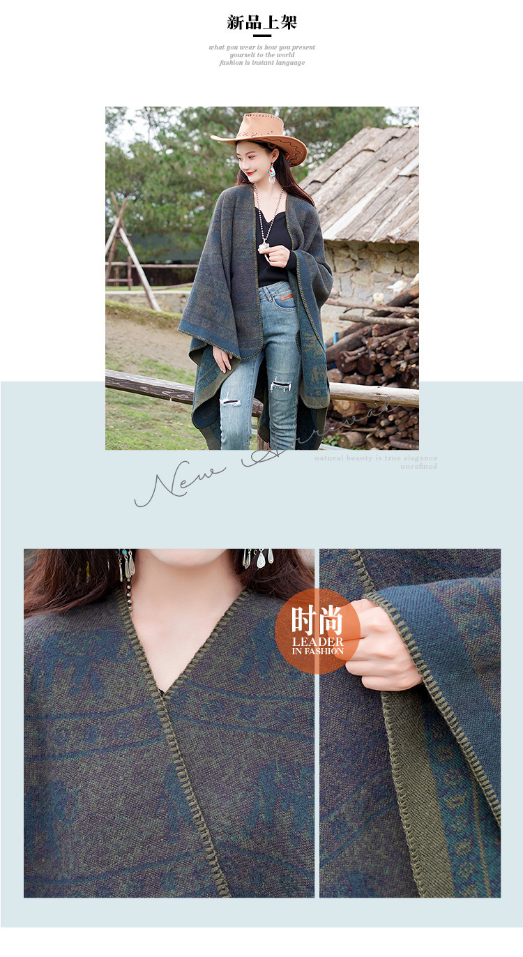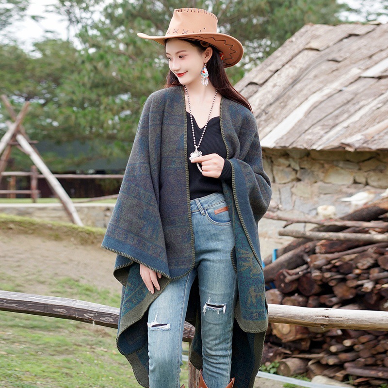 에어컨이 달린 목도리 여성 니트 목도리 휴가 사진 민족 스타일을 입고 티베트 신장 윈난 관광 케이프 착용스토어 가기