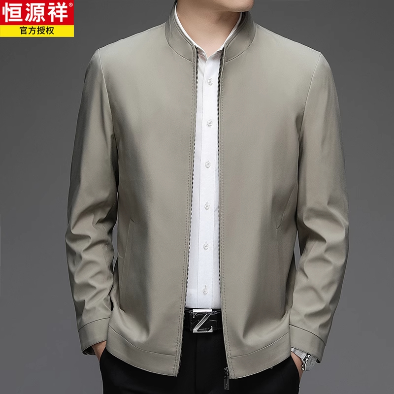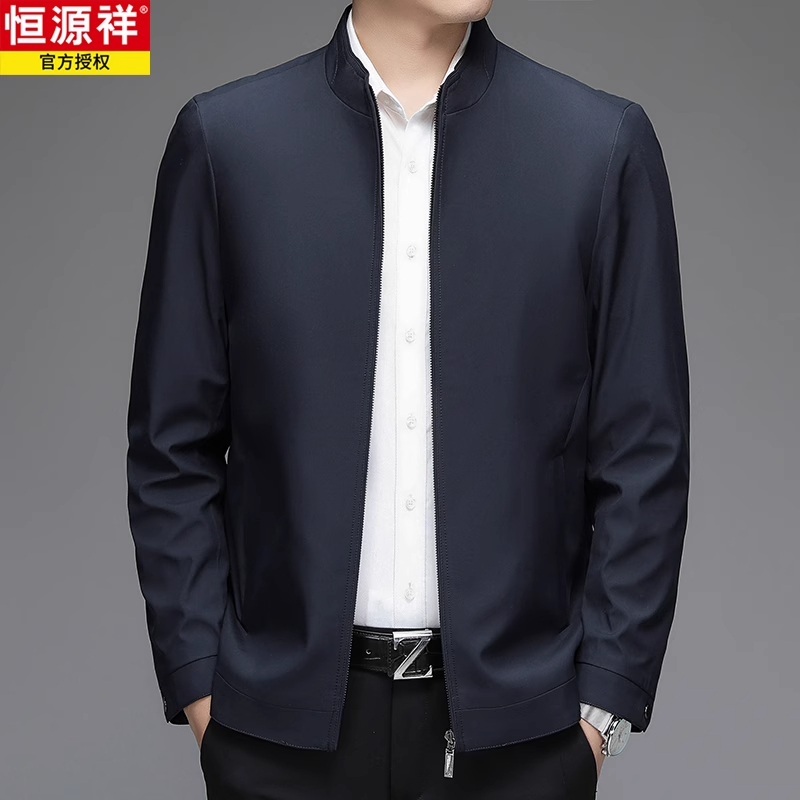 Ly Hengyuan Xiangcai 양 실크 재킷 남성 봄, 가을 공무원 얇은 중년 및 노인 지도자 재킷 아빠