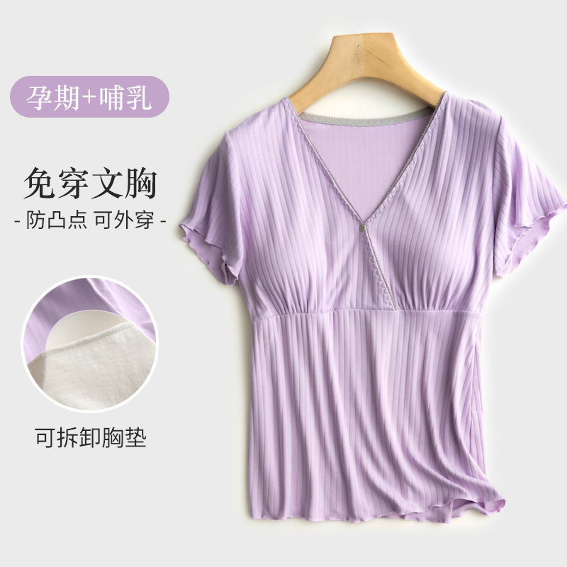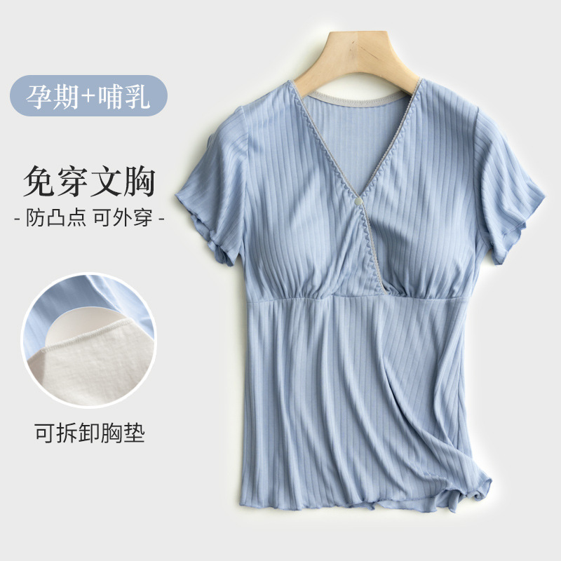 모유 수유 반소매 티셔츠 임산부 파자마 산후 모유 수유 탑 여름 얇은 기본 레이어 셔츠 싱글 피스