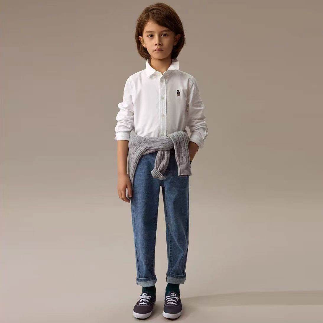 리틀베어 아동복 봄가을 남아 캐주얼 기본 흰색 셔츠 남자아이 멋스럽고 다재다능한 셔츠스토어 가기