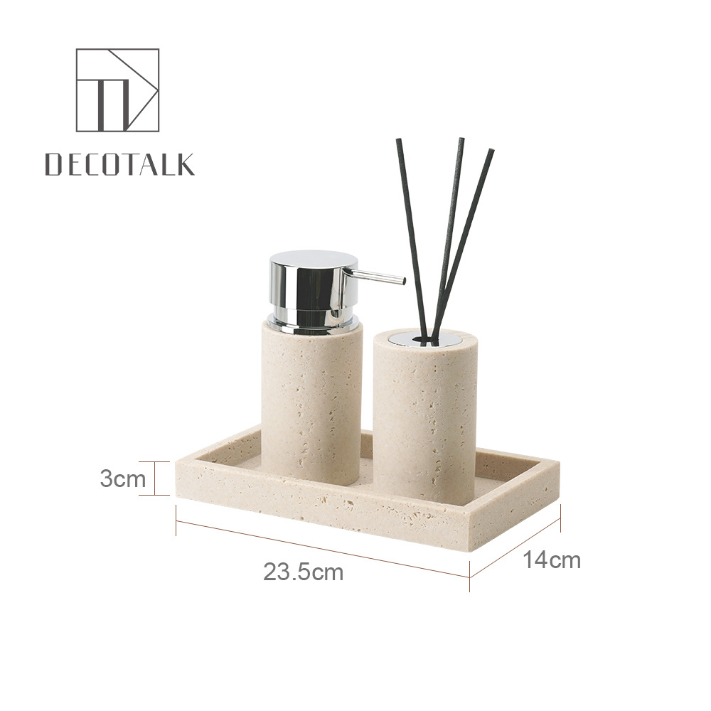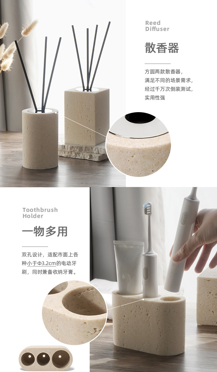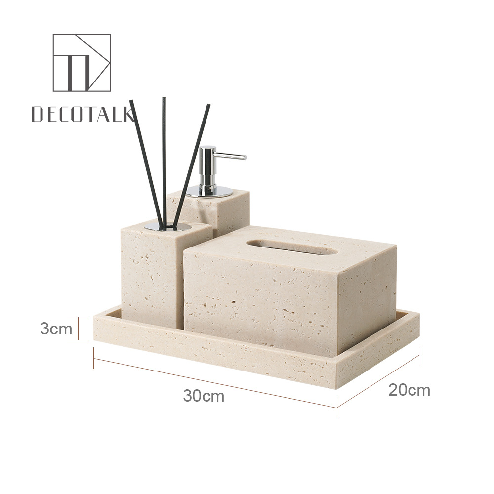 사암 노란 동굴 돌 욕실 5 조각 세척 세트 테이블 트레이 모델 룸 아로마 테라피 장식품