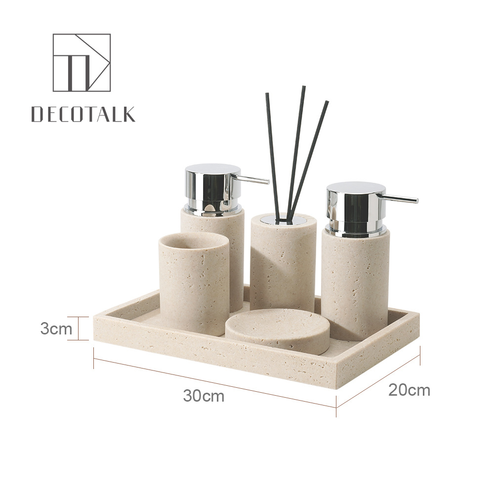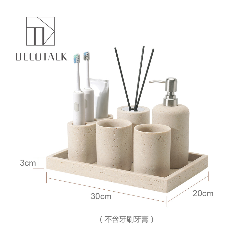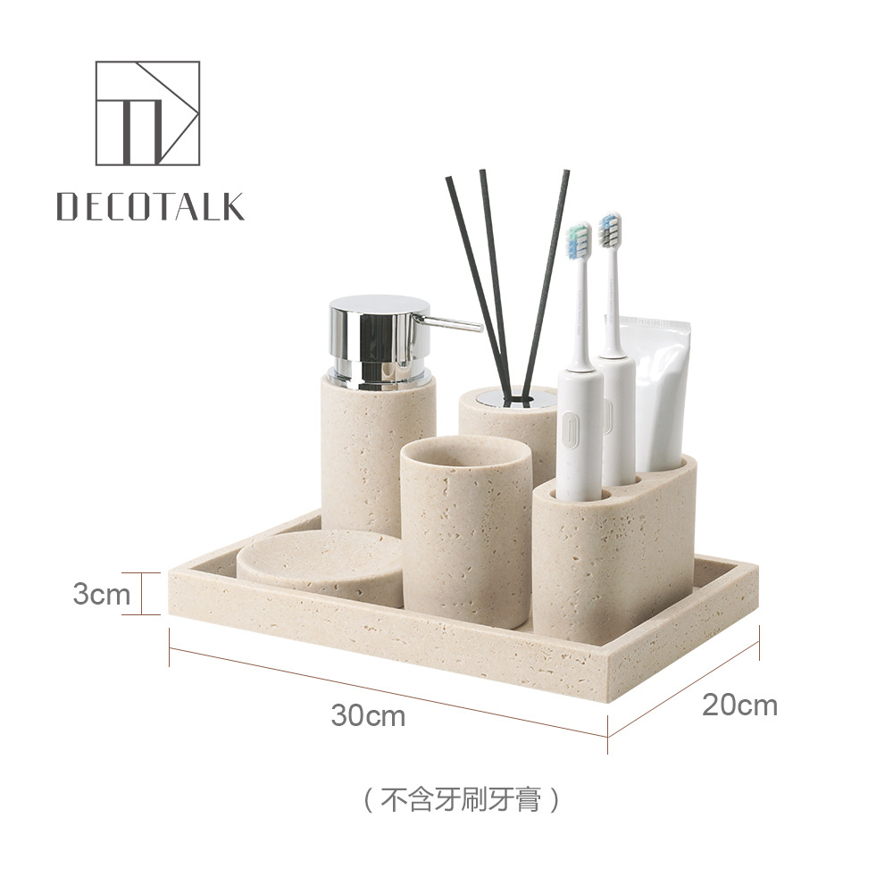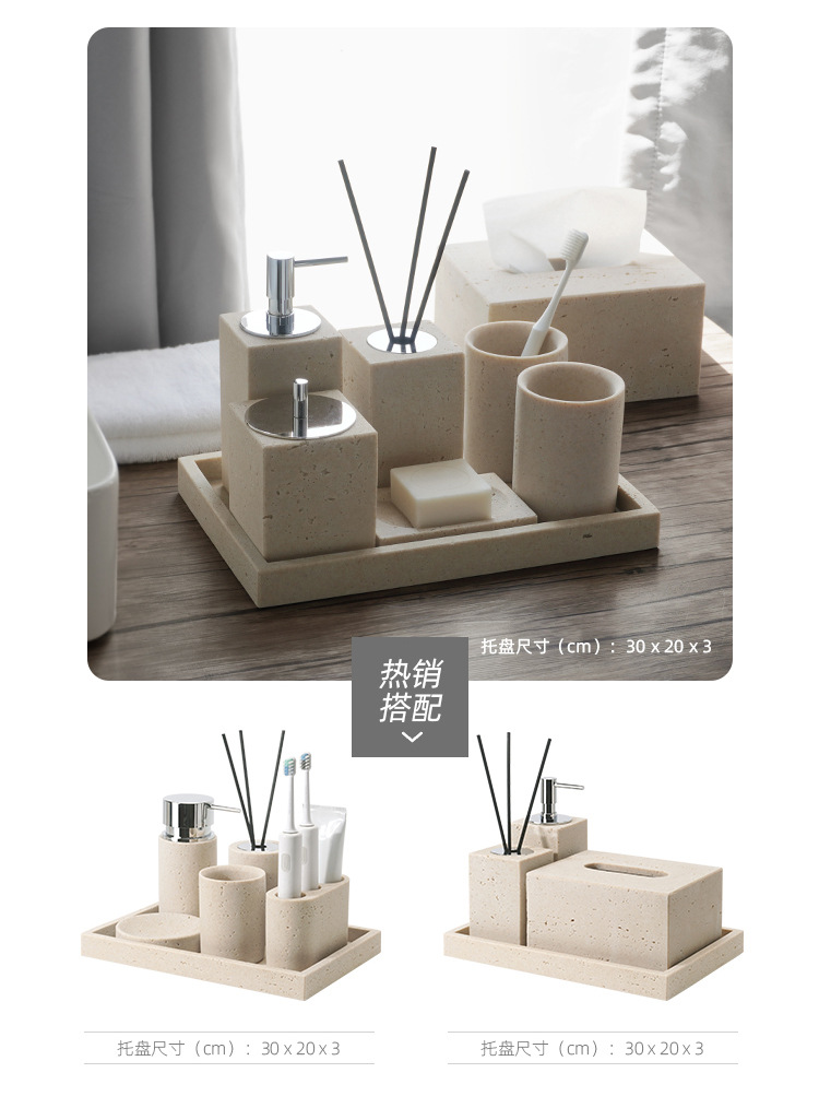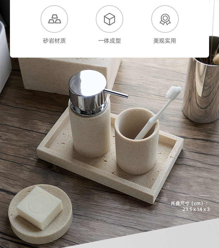 사암 노란 동굴 돌 욕실 5 조각 세척 세트 테이블 트레이 모델 룸 아로마 테라피 장식품스토어 가기