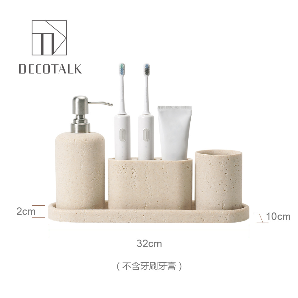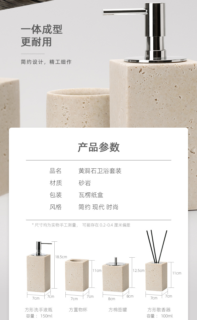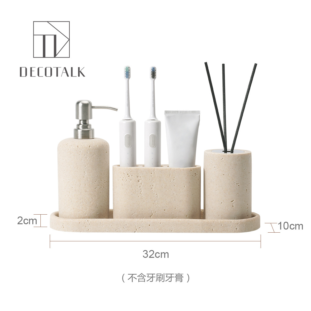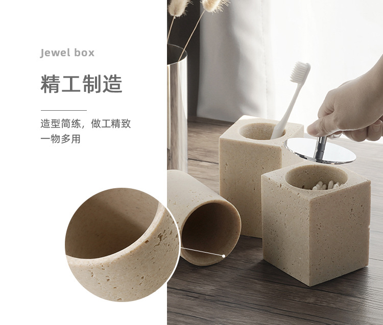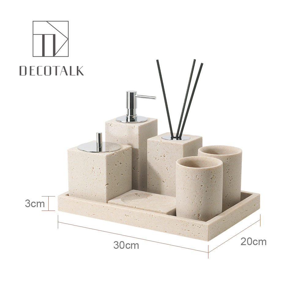 사암 노란 동굴 돌 욕실 5 조각 세척 세트 테이블 트레이 모델 룸 아로마 테라피 장식품스토어 가기