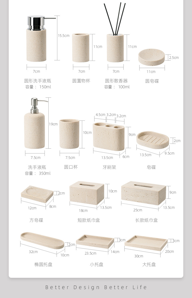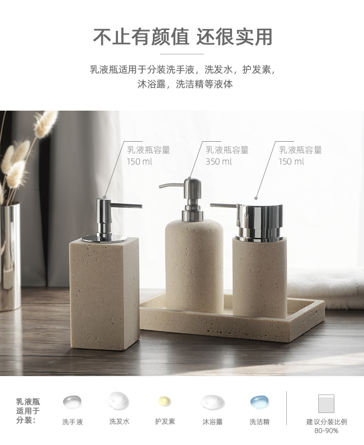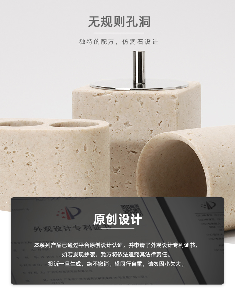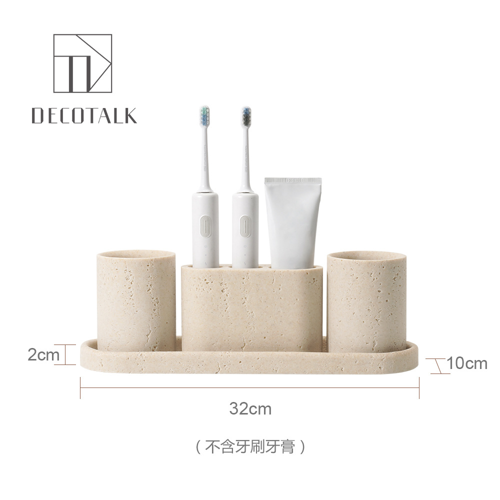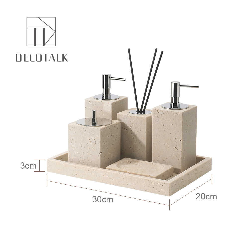 사암 노란 동굴 돌 욕실 5 조각 세척 세트 테이블 트레이 모델 룸 아로마 테라피 장식품스토어 가기