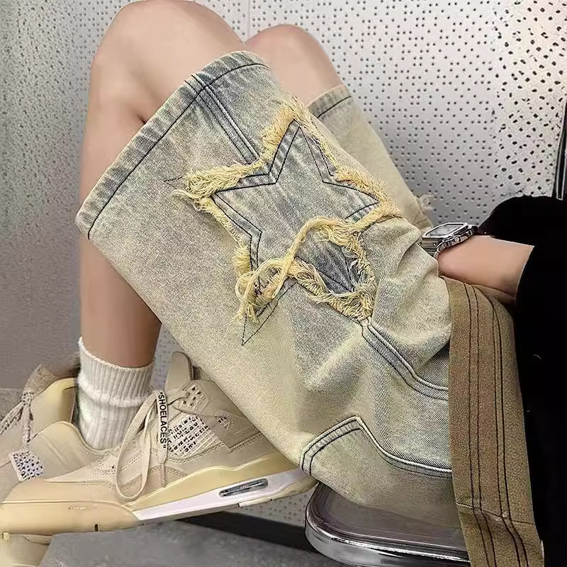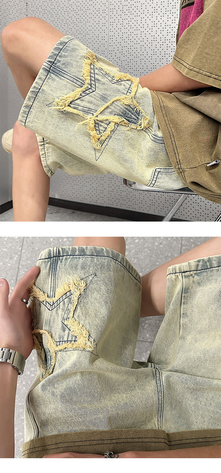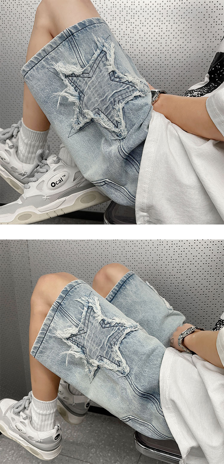 낡은 데님 반바지 남성 여름 미국 스타일 트렌디 한 루즈 플러스 사이즈 하이 스트리트 팬츠 트렌디 브랜드 트렌디 한 바지스토어 가기