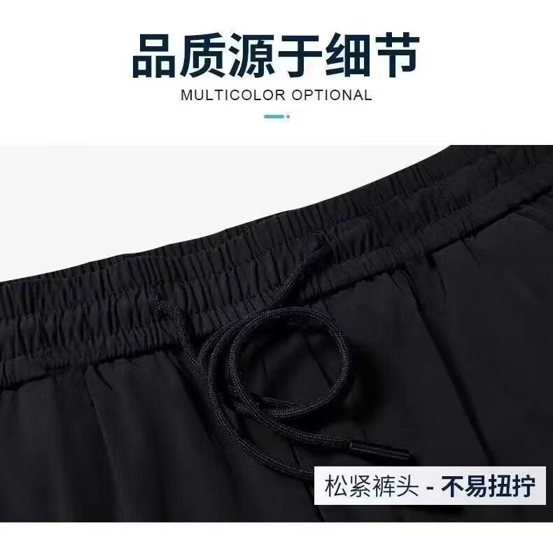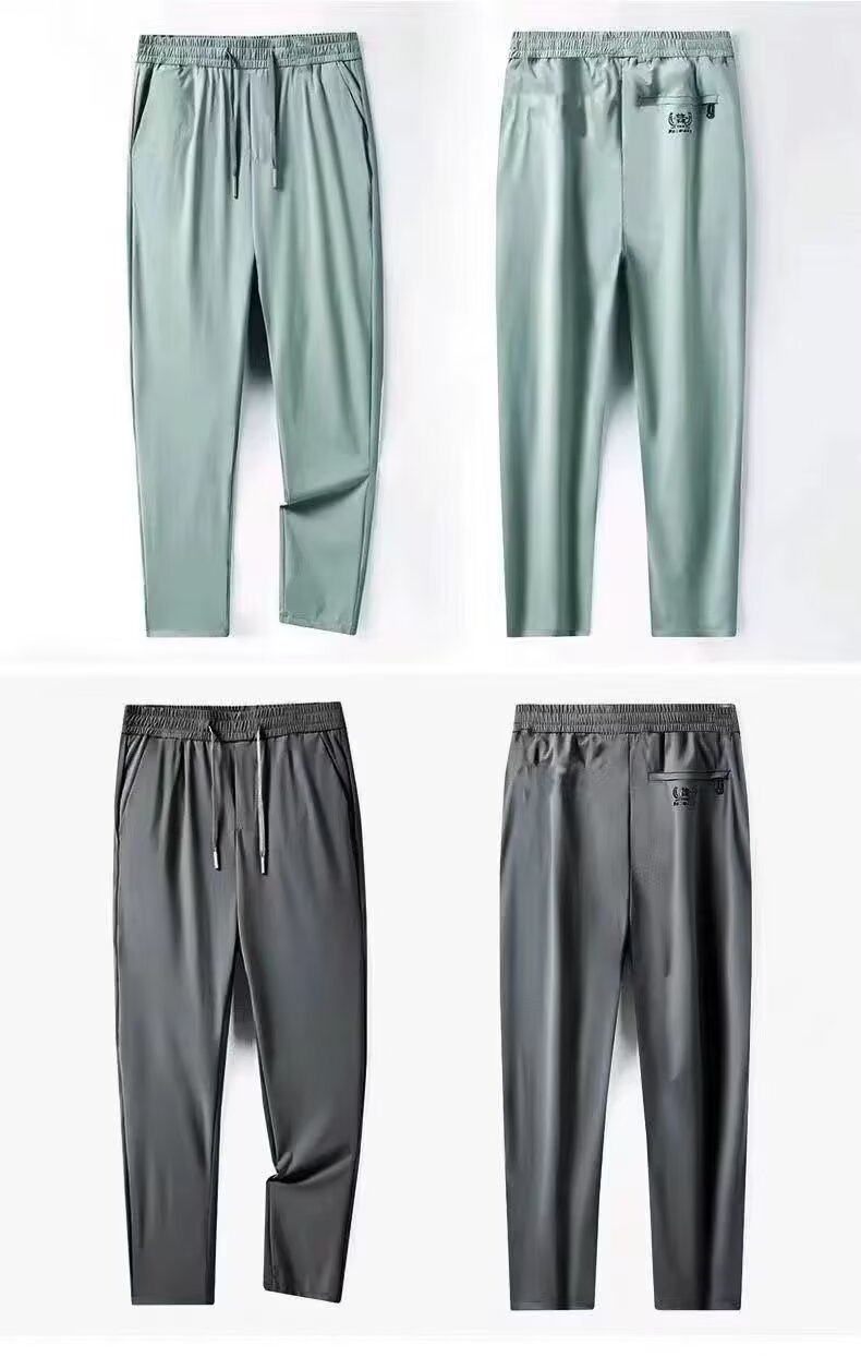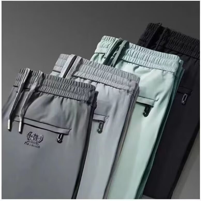 여름 아이스 실크 자른 바지 캐주얼 바지 남성용 Elastoelastelic 허리 느슨한 티더 스포츠 얇은 스트레이트 플러스 사이즈 바지스토어 가기