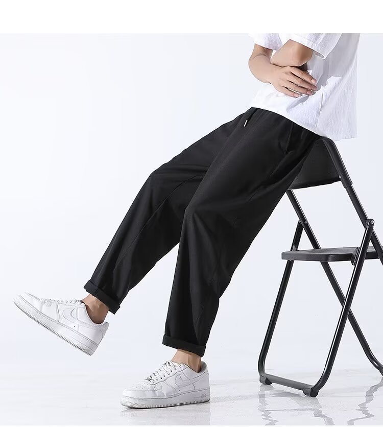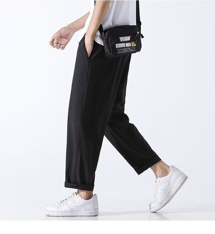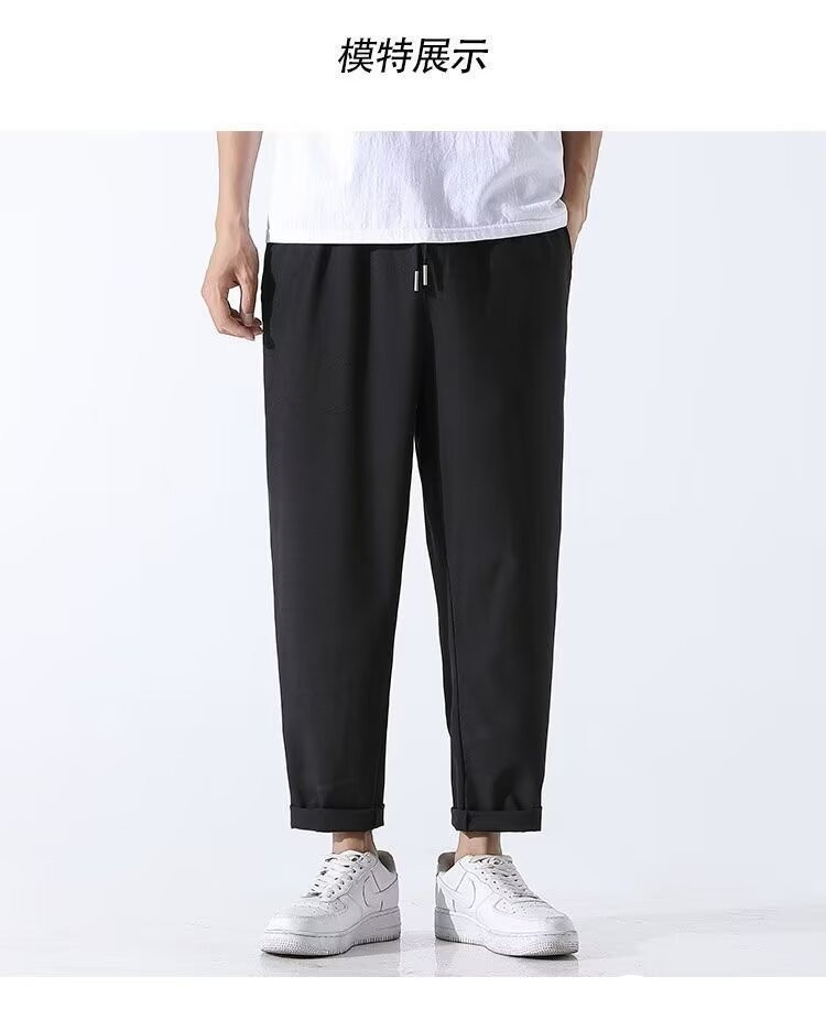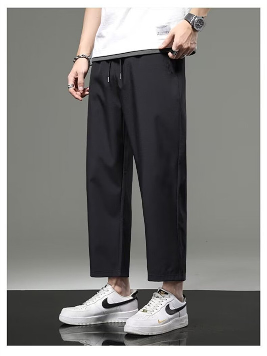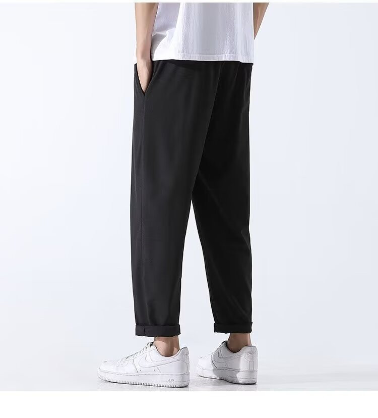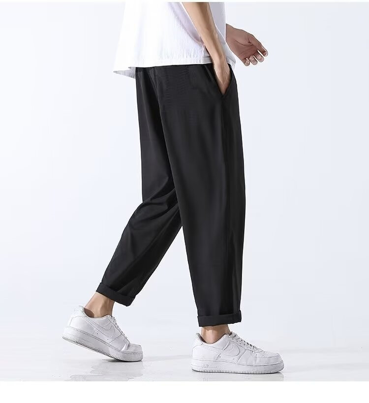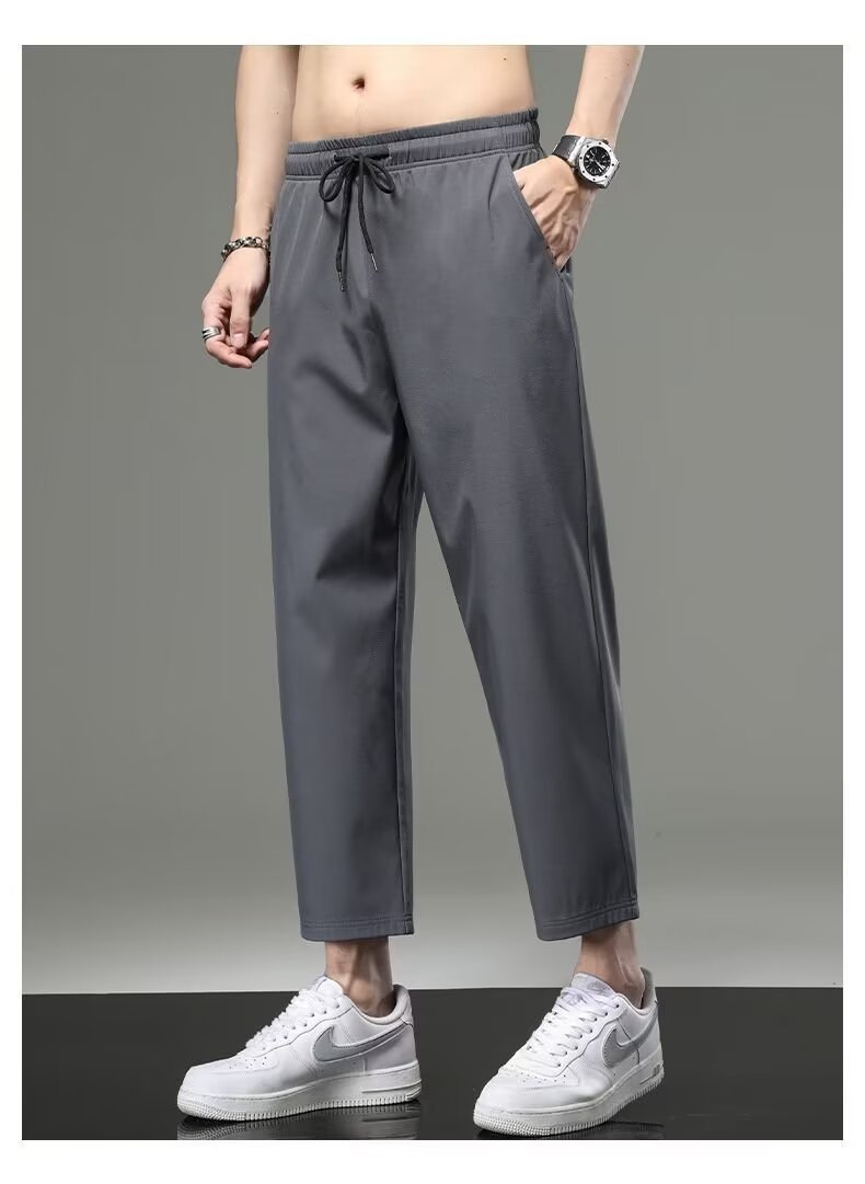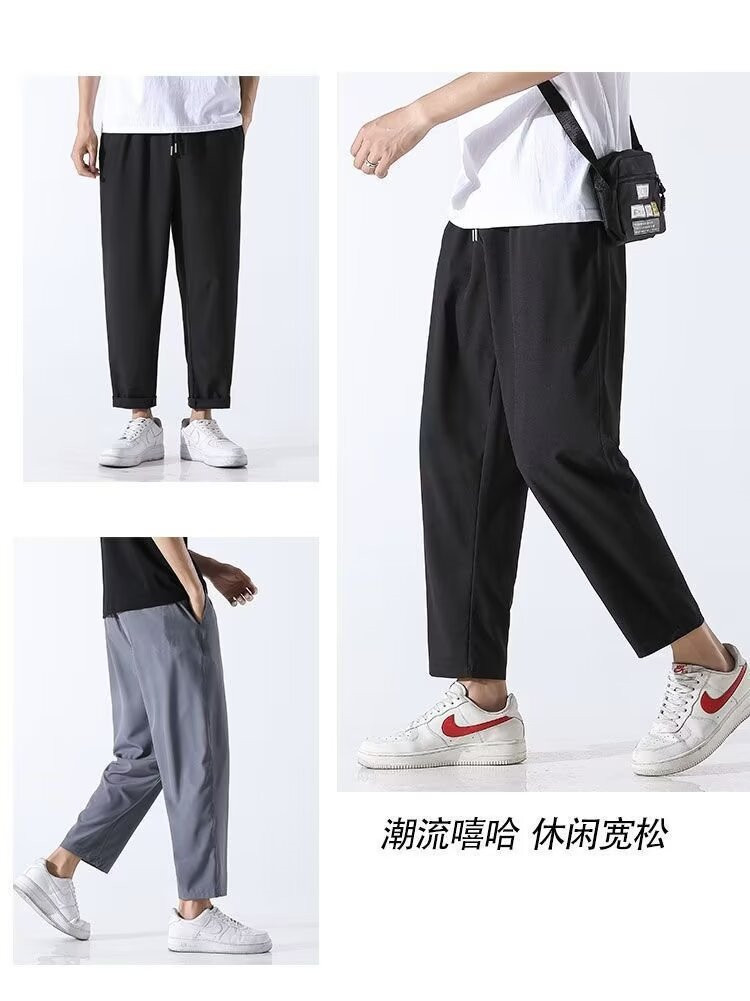 여름 아이스 실크 바지 남자의 얇은 느슨한 스트레이트 바지 빠른 건조 스포츠 바지 캐주얼 바지 남자 발목 길이 바지 새로운 도착스토어 가기