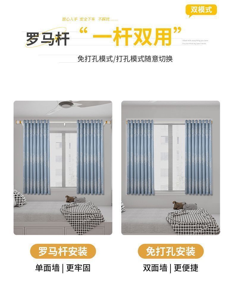 인터넷으로 유명한 커튼 침실 음영 구멍 무료 설치 커튼 로드 로드 로드 로드 새로운 스타일의 전체 거실 세트스토어 가기
