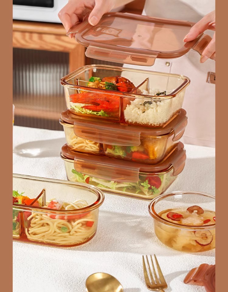 풍미와 쌀이 분리 된 그릇 신선 보관 상자 전자 레인지 난방 도시락 사무원 식사가없는 붐비는 유리 도시락스토어 가기