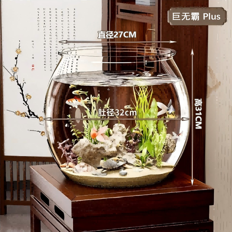 둥근 물고기 탱크 플라스틱 원피스 높은 투과성 낙하 방지 유리 거실 작은 데스크탑 생태 탱크