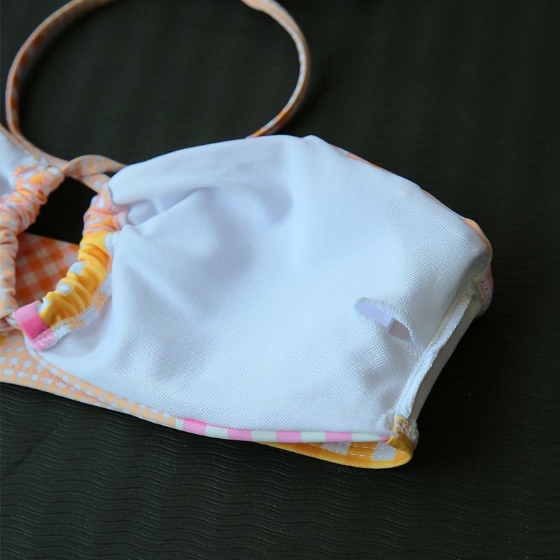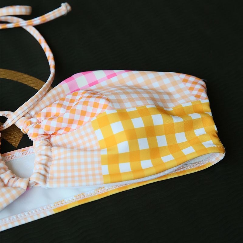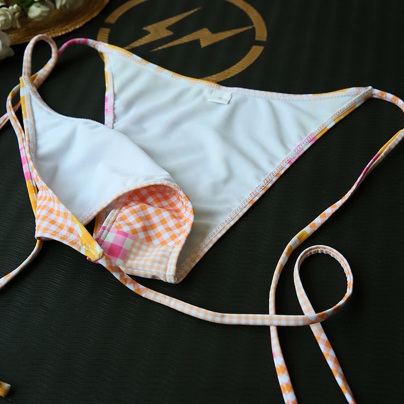핑크 오렌지 격자 무늬 프린트 스트랩리스 비키니 스트랩 트리플 비키니 서핑 수영복 여성 스파이스 걸 싼야 휴가