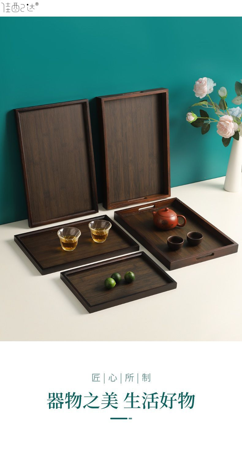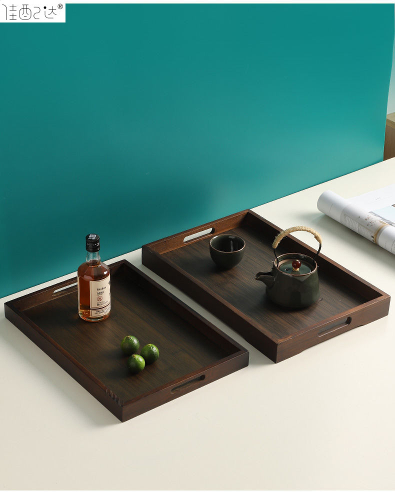 일본식 차 트레이 대나무 간단한 호두 컬러 트레이 보관 직사각형 나무 트레이 보관 골동품 보석 기타