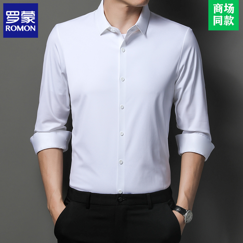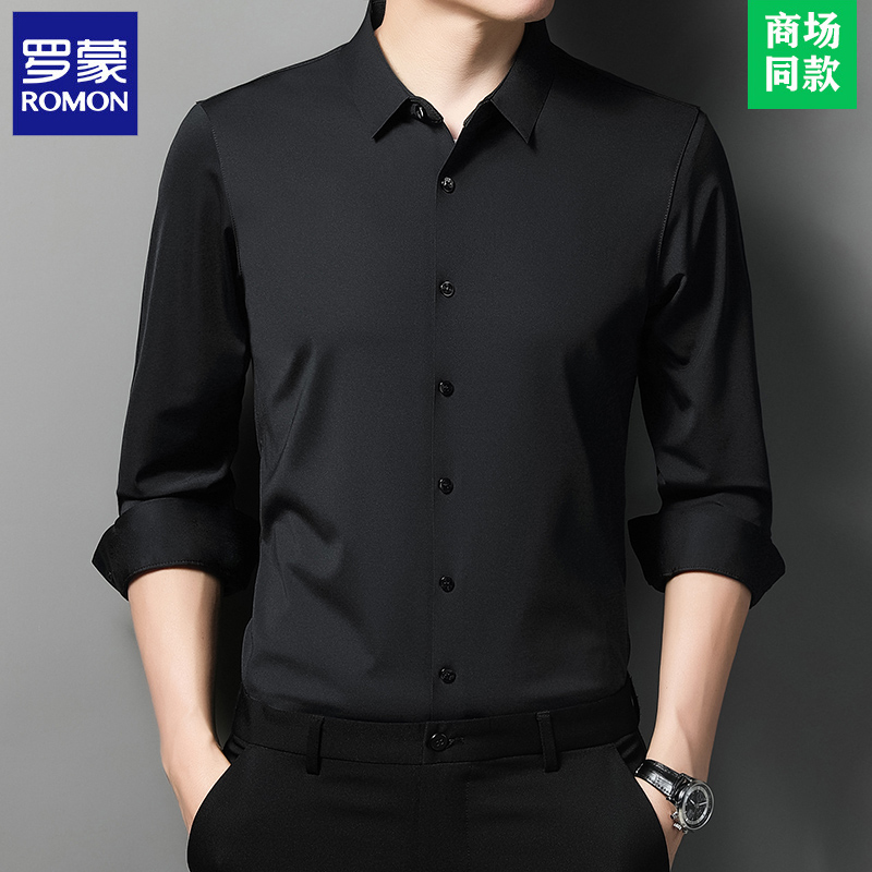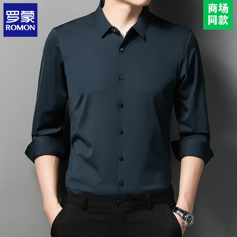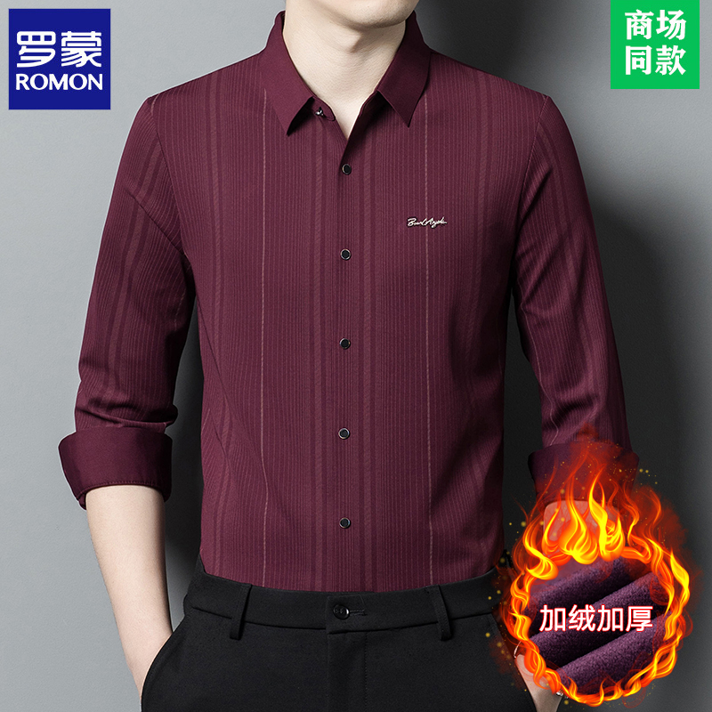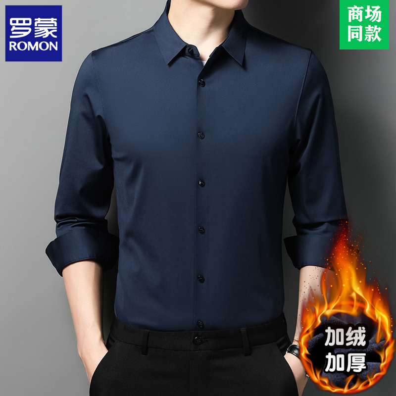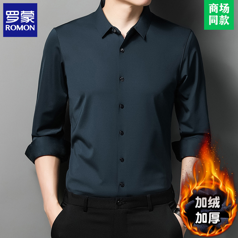 Ly罗蒙高级感100%桑蚕丝长袖衬衫男士秋冬季商务休闲加绒加厚衬衣스토어 가기