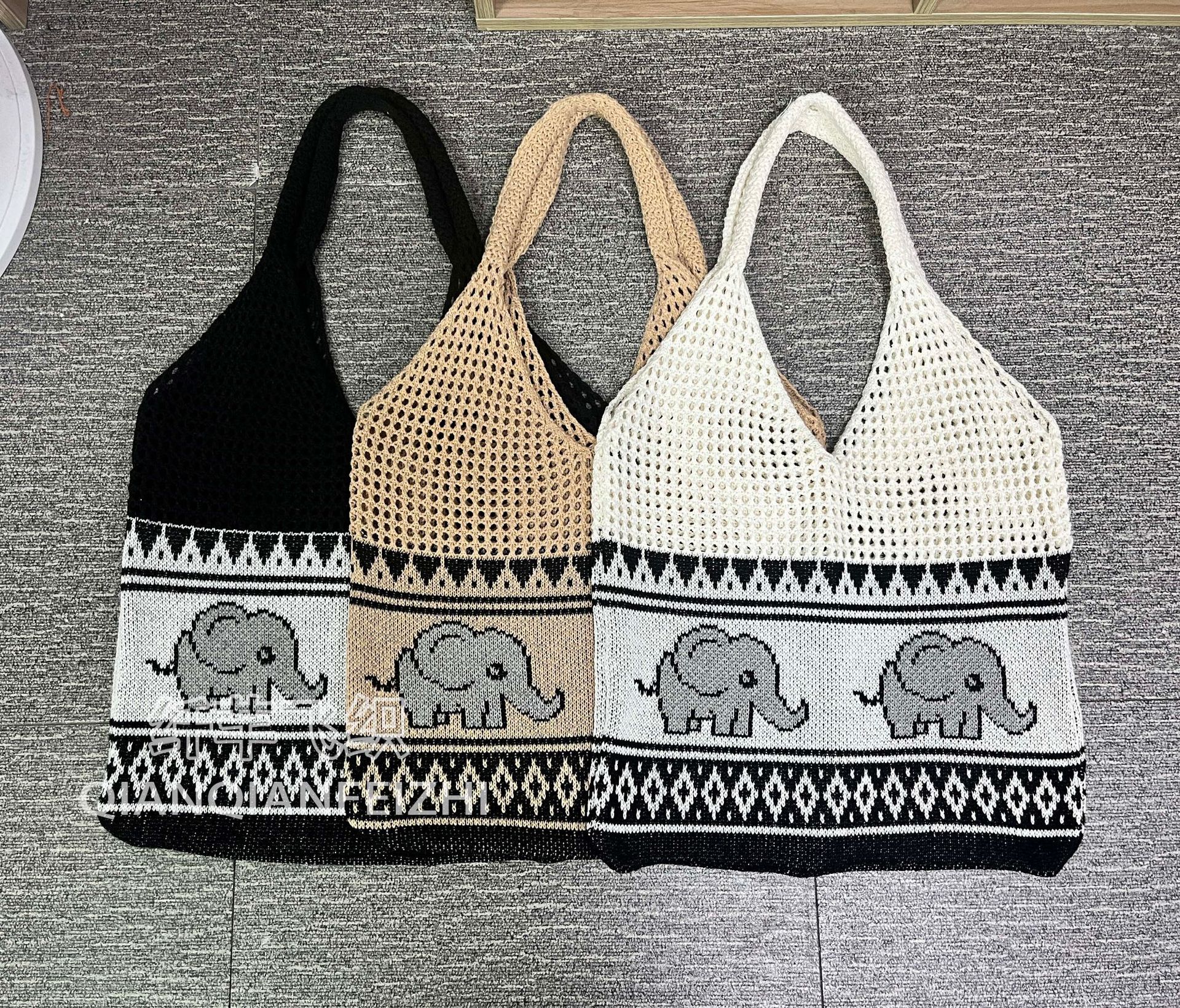 니트 가방 빈티지 메쉬 중공 간단한 짠 가방 여성 가방 숄더백 양모 핸드백 쇼핑 가방
