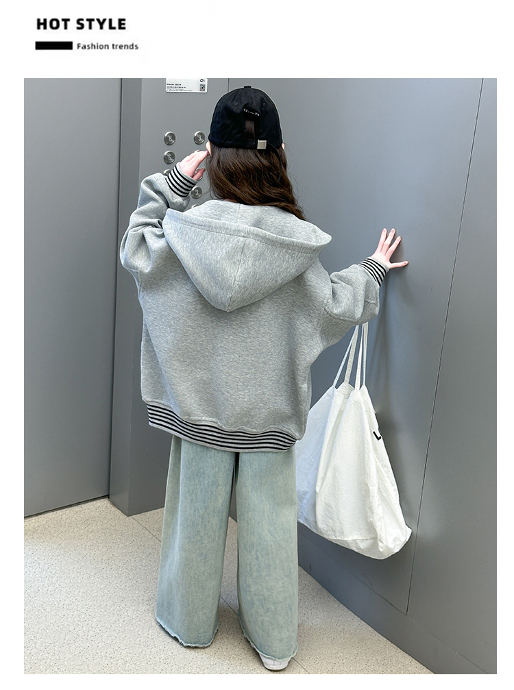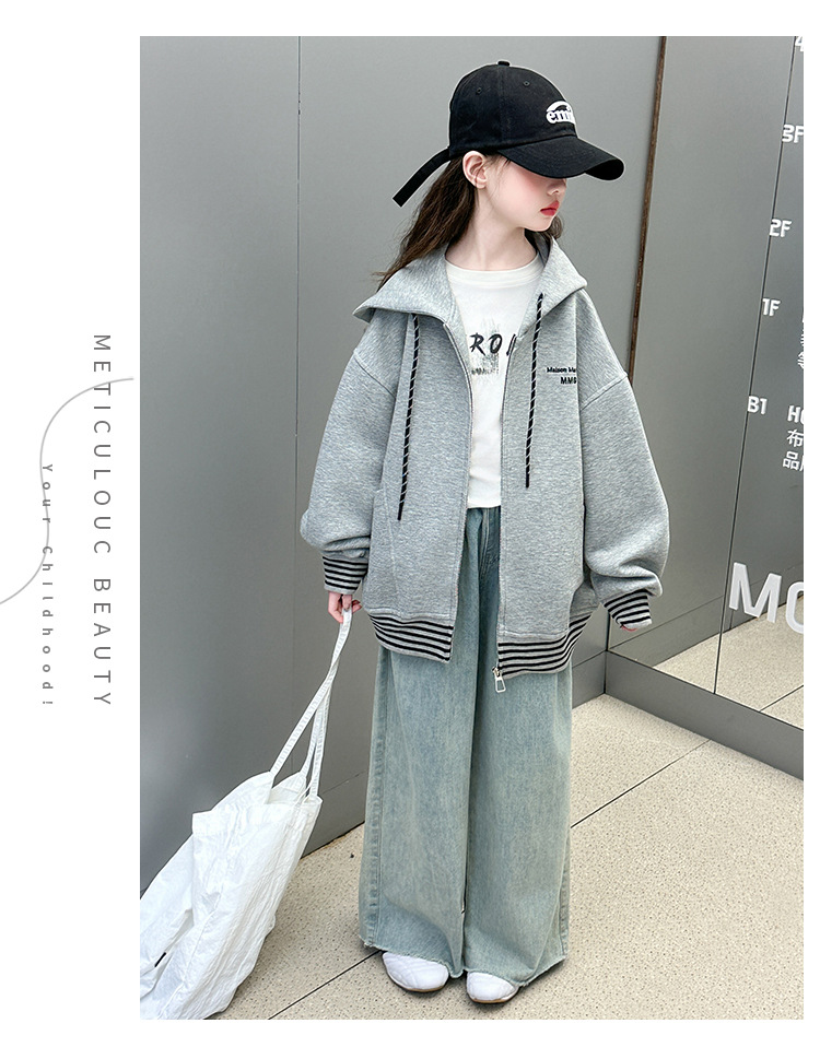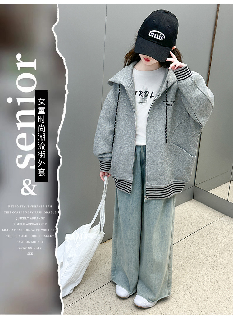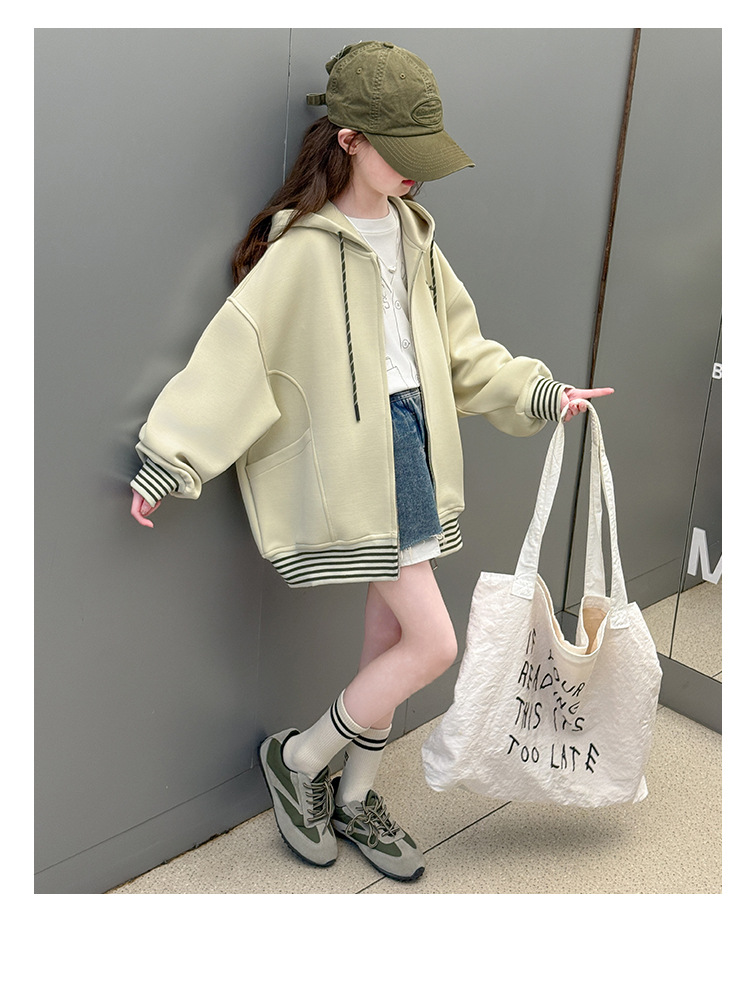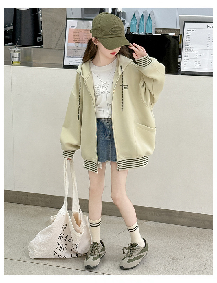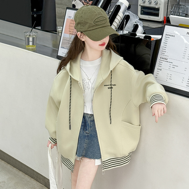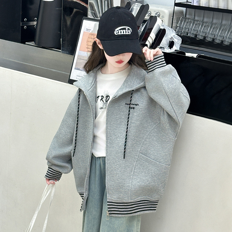 여성 빅 아동용 코트 2025 년 새 스타일 큰 어린이 소녀 캐주얼 스포츠 카디건 스웨터 중학생 한국식 탑스토어 가기