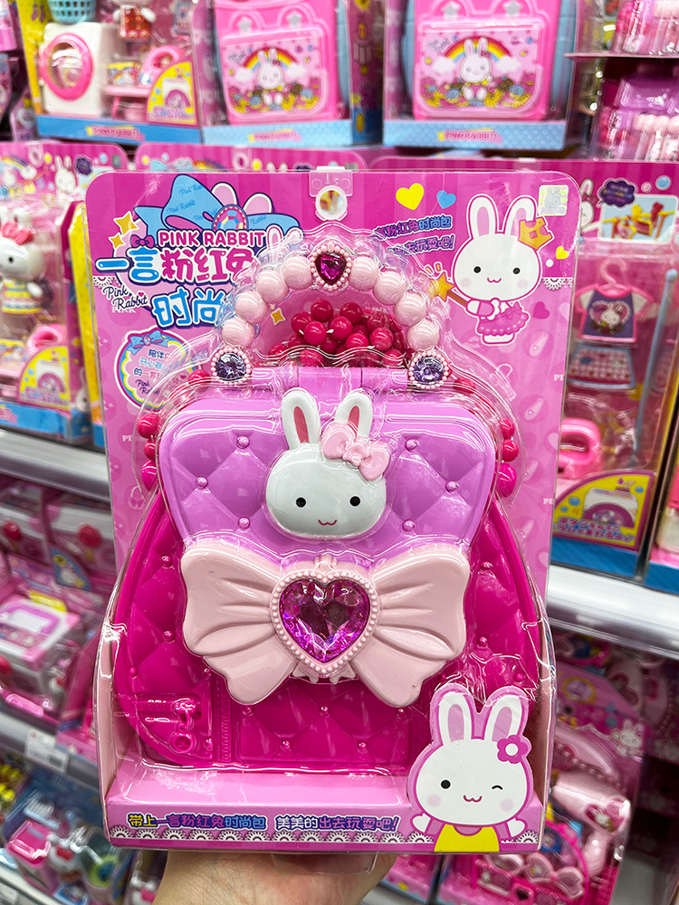 한 단어 핑크 토끼 어린이 화장품 상자 시뮬레이션 테이블 휴대용 저장 가방 작업 소녀 놀이 홈 장난감스토어 가기