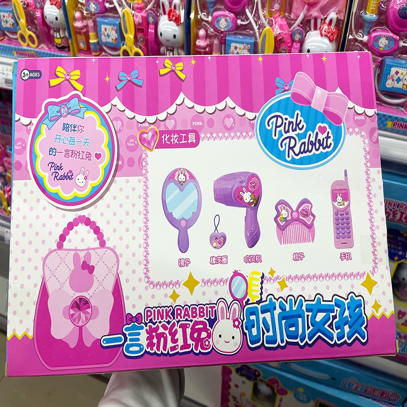 한 단어 핑크 토끼 어린이 화장품 상자 시뮬레이션 테이블 휴대용 저장 가방 작업 소녀 놀이 홈 장난감