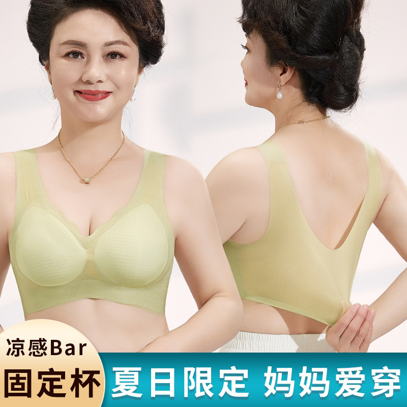 엄마의 속옷 브라 중년 및 노인 여성 조끼 스타일 풀오버 플러스 사이즈 비 마킹 림리스 여름 얇은 브래지어스토어 가기