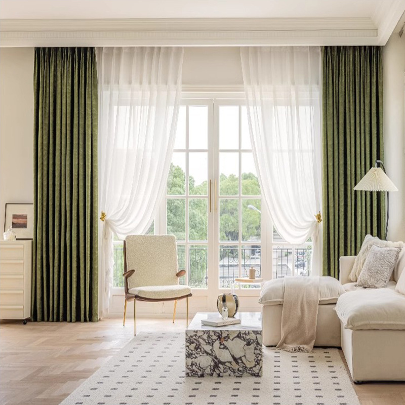 고급 거실 커튼 유럽 스타일의 간단한 현대적인 두꺼운 플란넬 침실 음영 고급 대기 창 마감 커튼