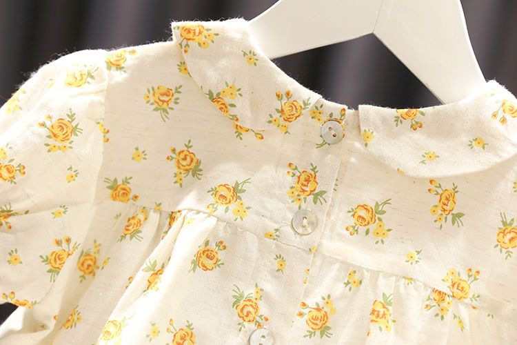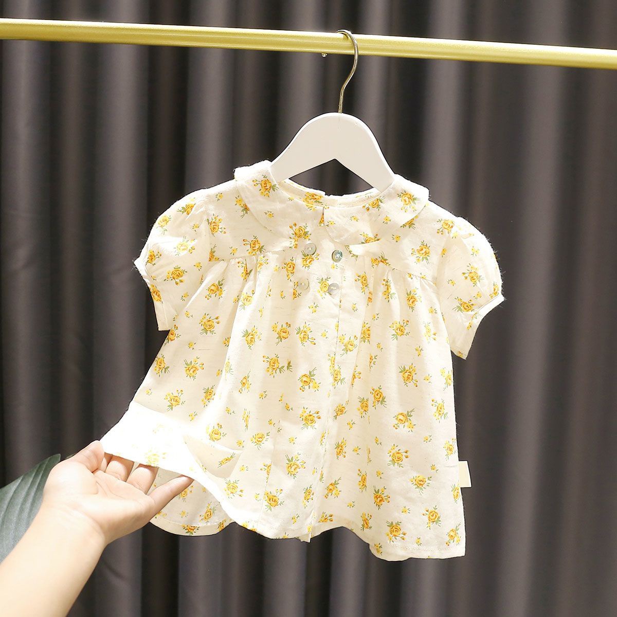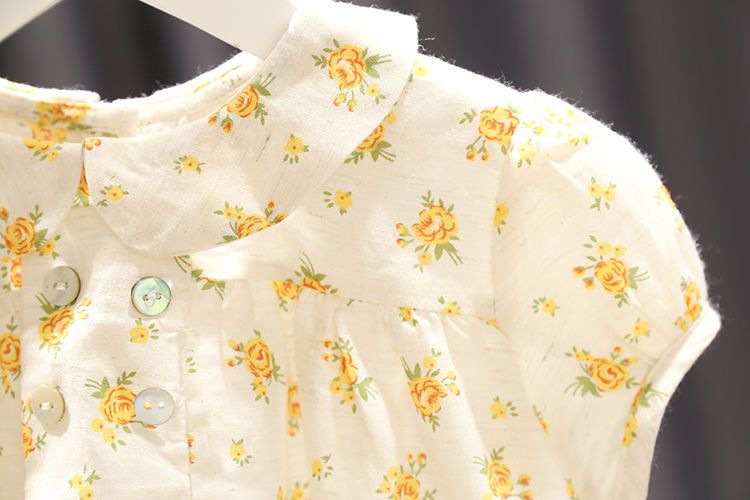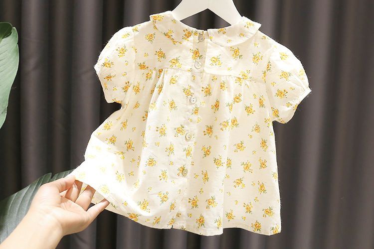 소녀 여름 셔츠 아기 세련된 어린이 성격 유행 브랜드 신선한 인형 칼라 꽃 짧은 소매 셔츠