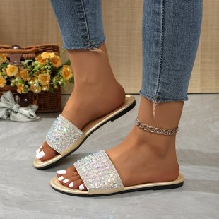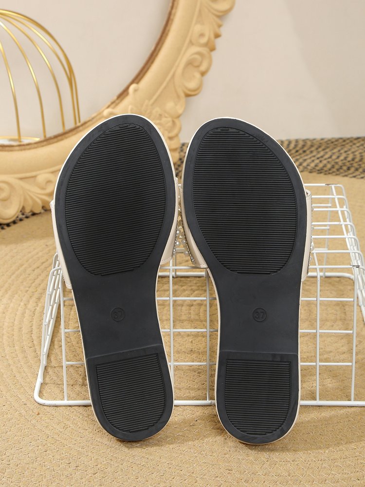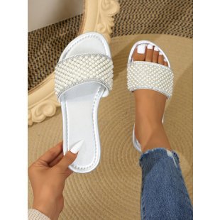 2025 년 여름 새로운 슬리퍼 여성 한국 스타일 플러스 사이즈 샤넬 스타일 세련된 펄 플랫 비치 샌들 및 여성용 슬리퍼