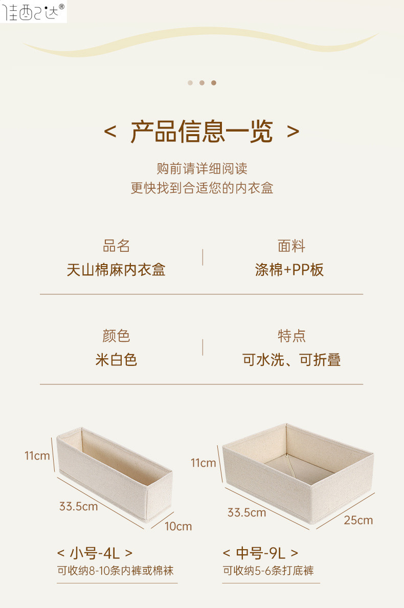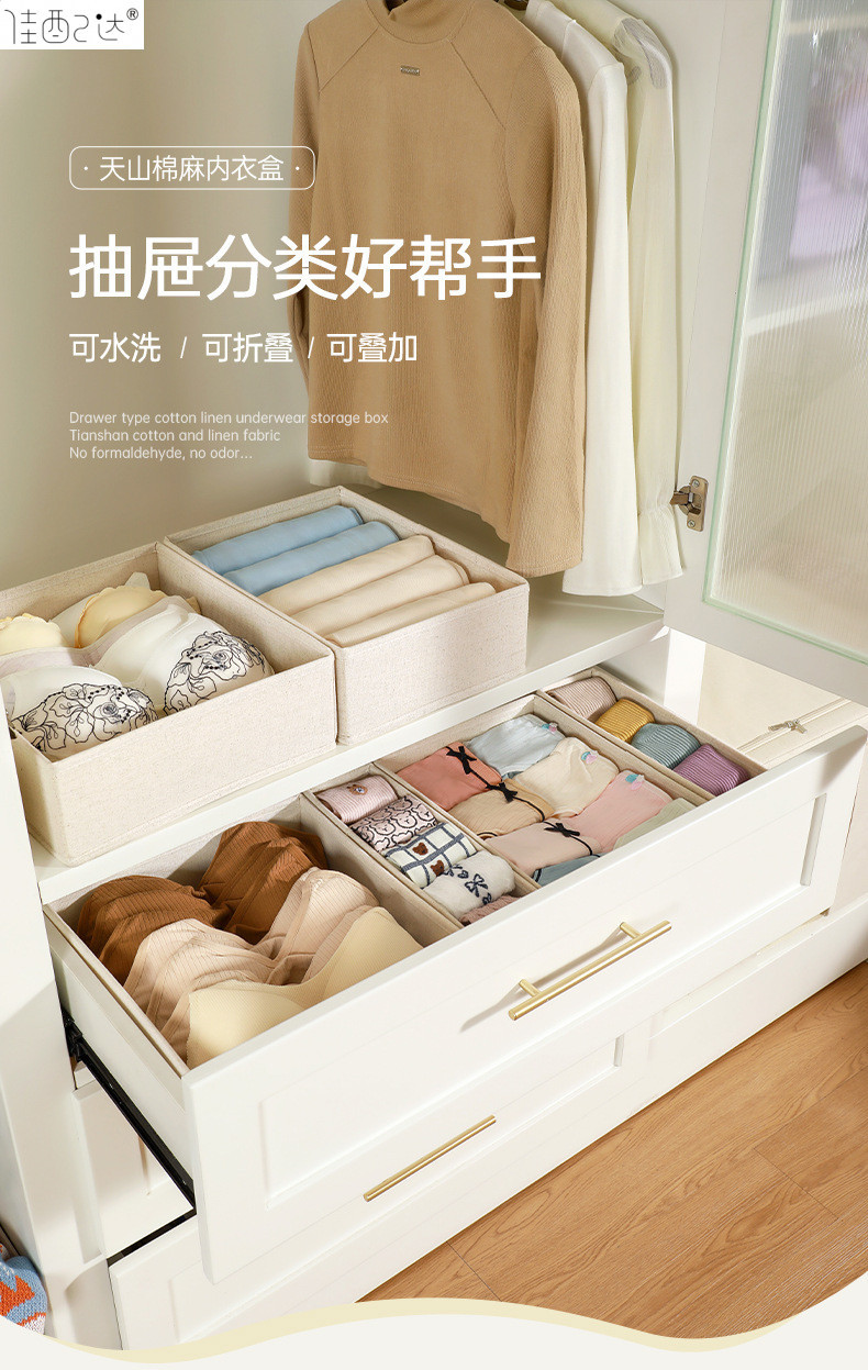 새로운 Tianshan 면화 및 린넨 시리즈 속옷 저장 상자 보관 부문 폭발 접이식 세척 홈 마감 보관 바구니