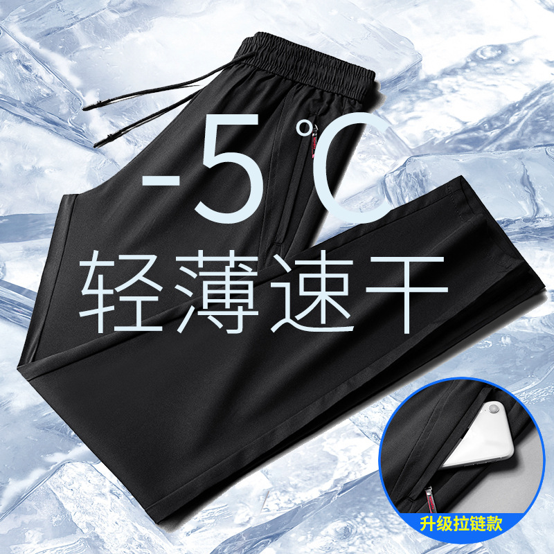 스트레이트 아이스 실크 캐주얼 긴 바지 남자 여름 얇은 느슨한 올매치 한국 스타일 유행 스포츠 자른 와이드 레그 바지스토어 가기