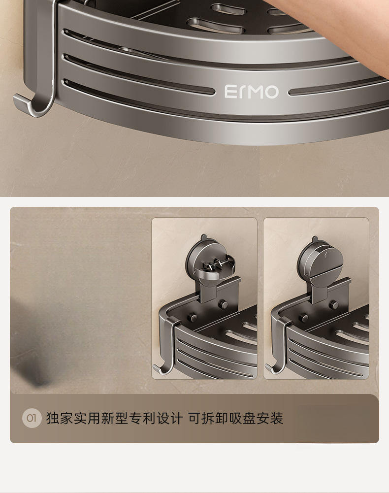 • [흡착컵 강화 모델] 더블 레이어 건 그레이 삼각형 바구니 ☆ ☆