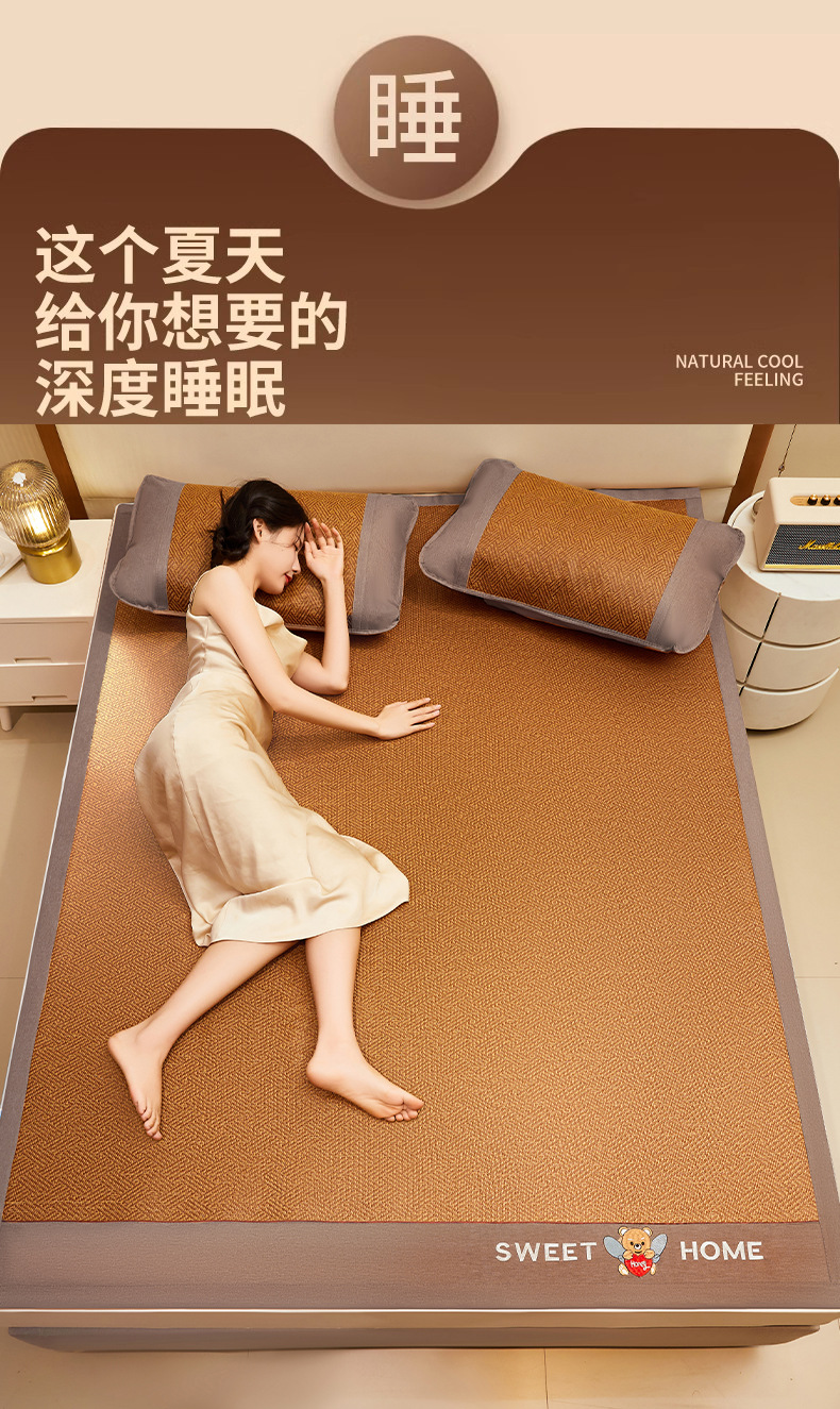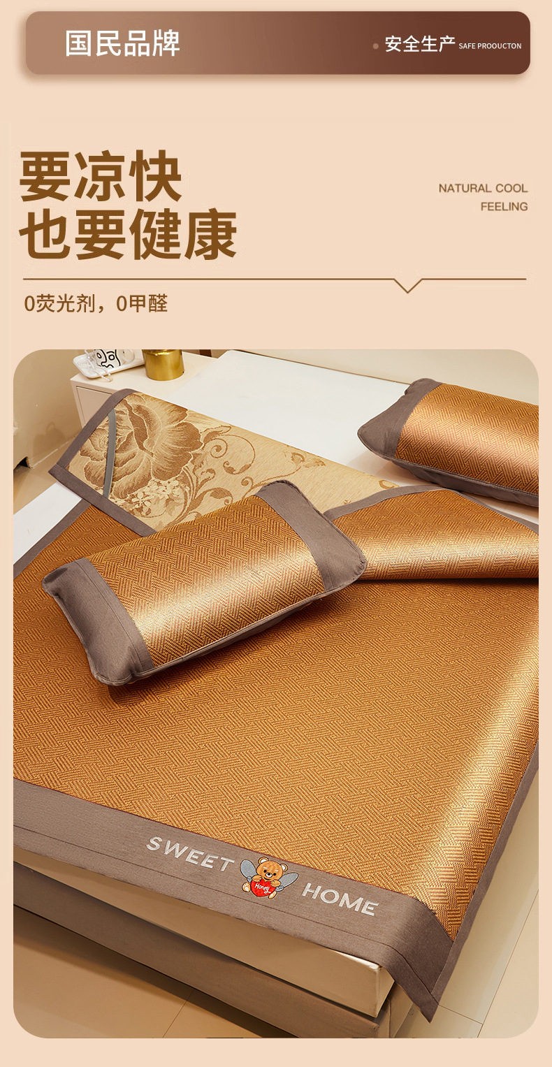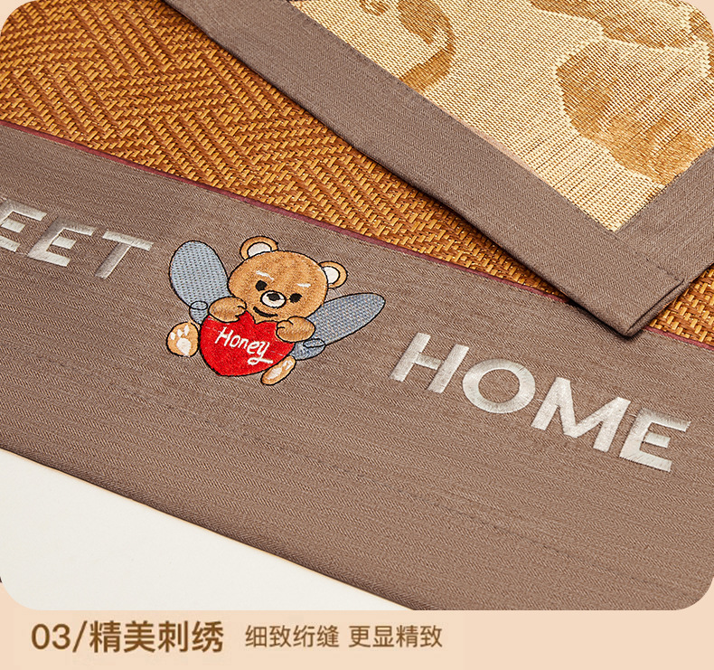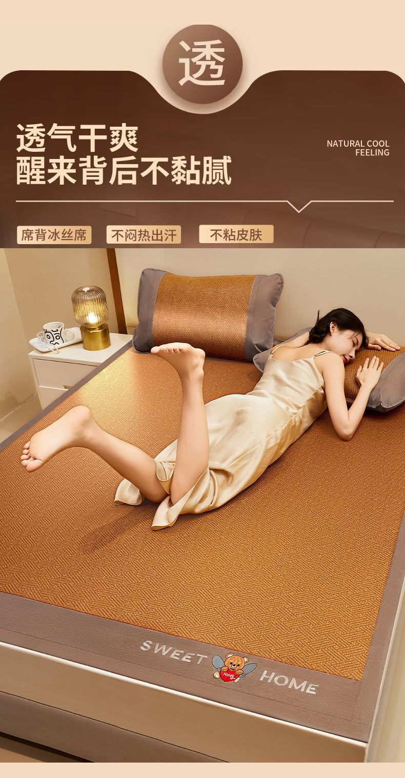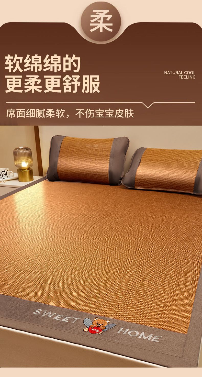 2025 심플 베어 수 놓은 아이스 등나무 매트 3 조각 접이식 홈 싱글 더블 학생 소프트 매트 라이브 방송스토어 가기