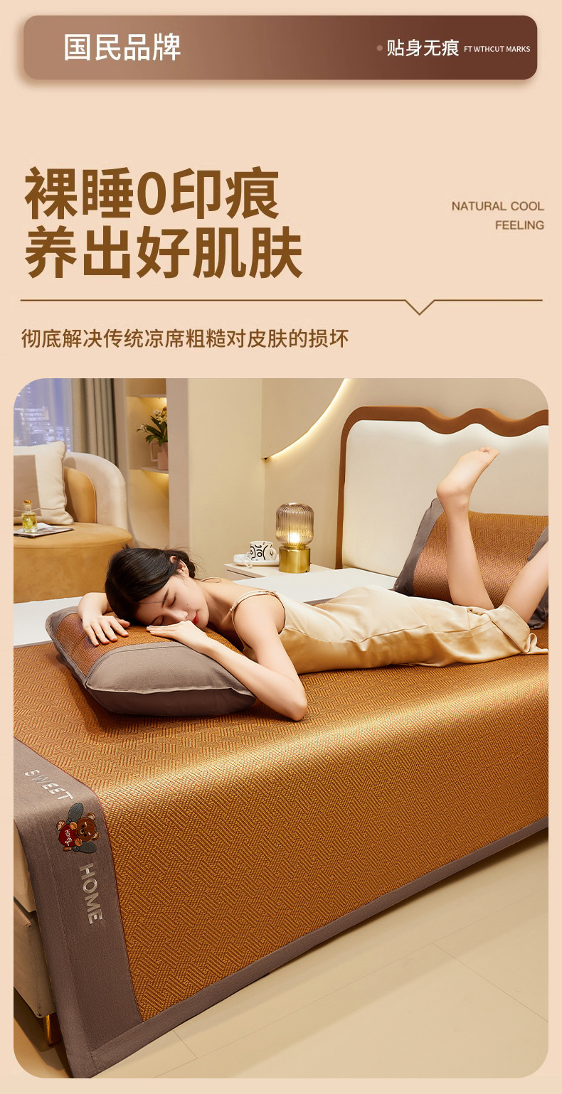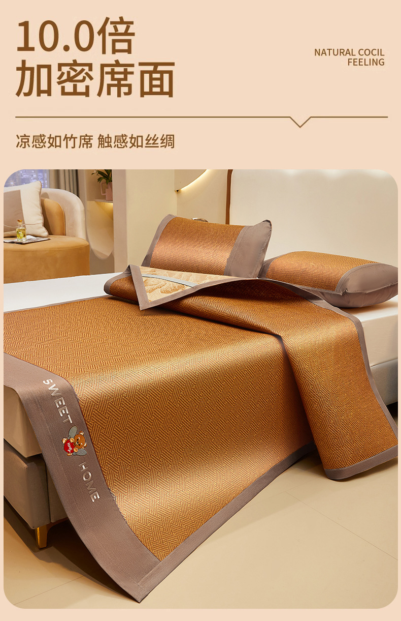 2025 심플 베어 수 놓은 아이스 등나무 매트 3 조각 접이식 홈 싱글 더블 학생 소프트 매트 라이브 방송
