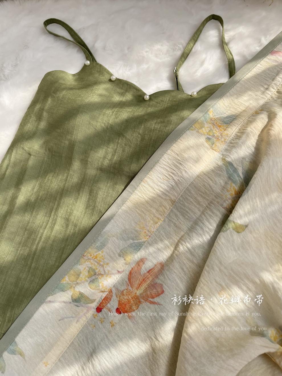 셔츠와 언어 꽃잎은 가슴 패드 조끼와 함께 썰렁 거리는 끈이없는 중국 요소를 뒷받침하는 봄과 여름 면직물