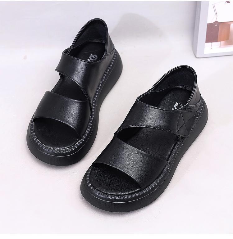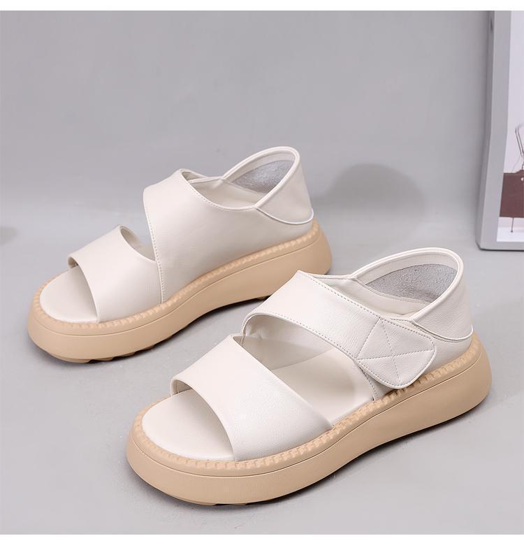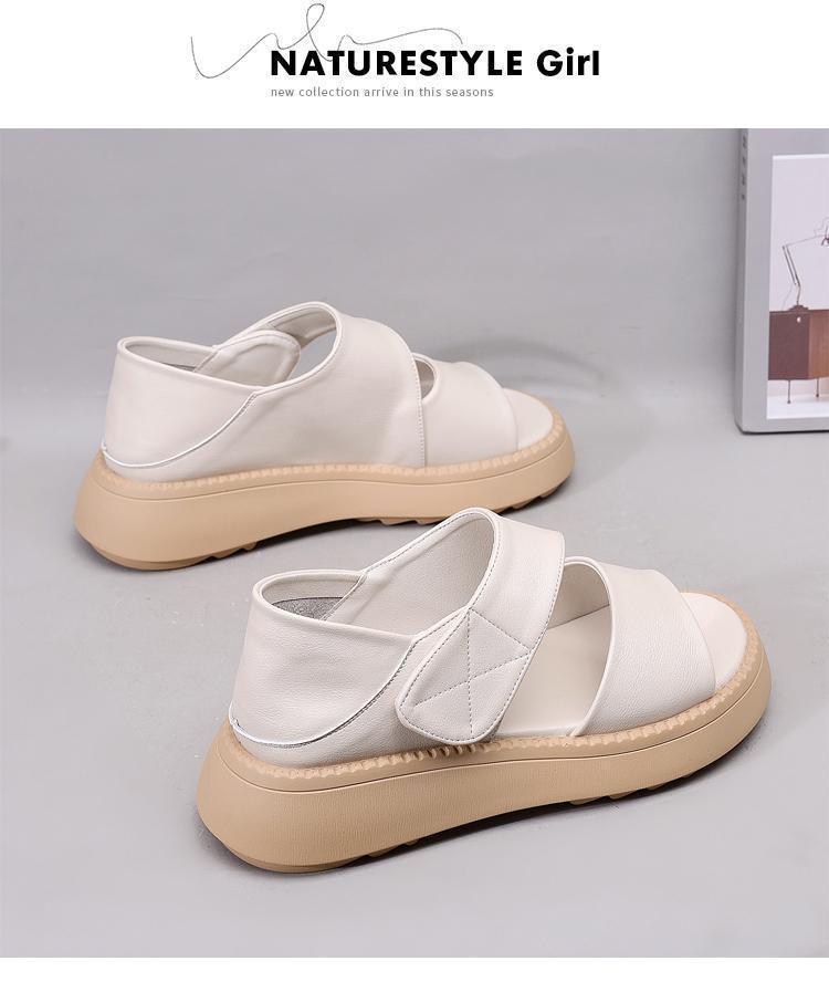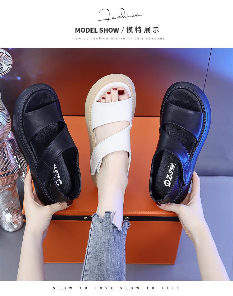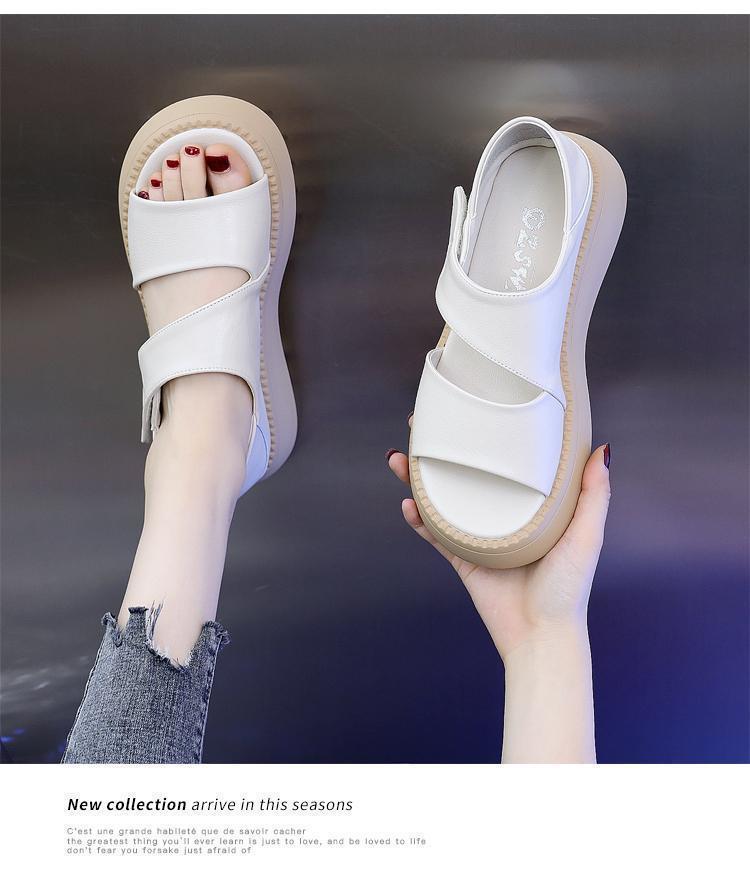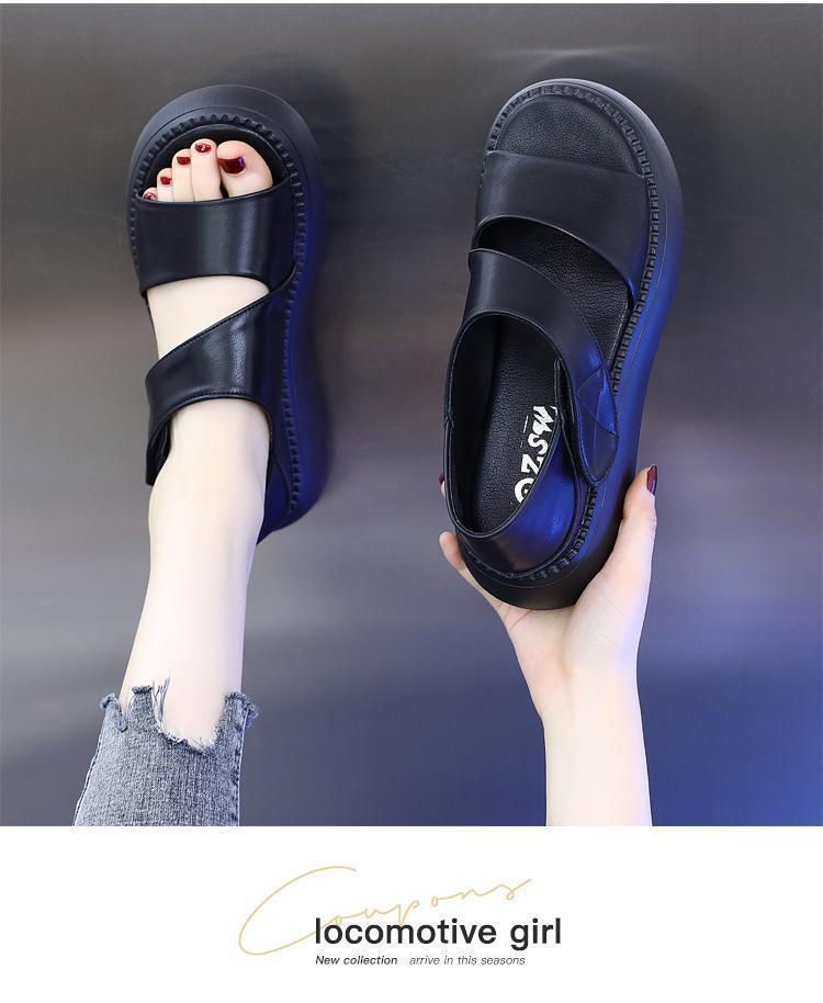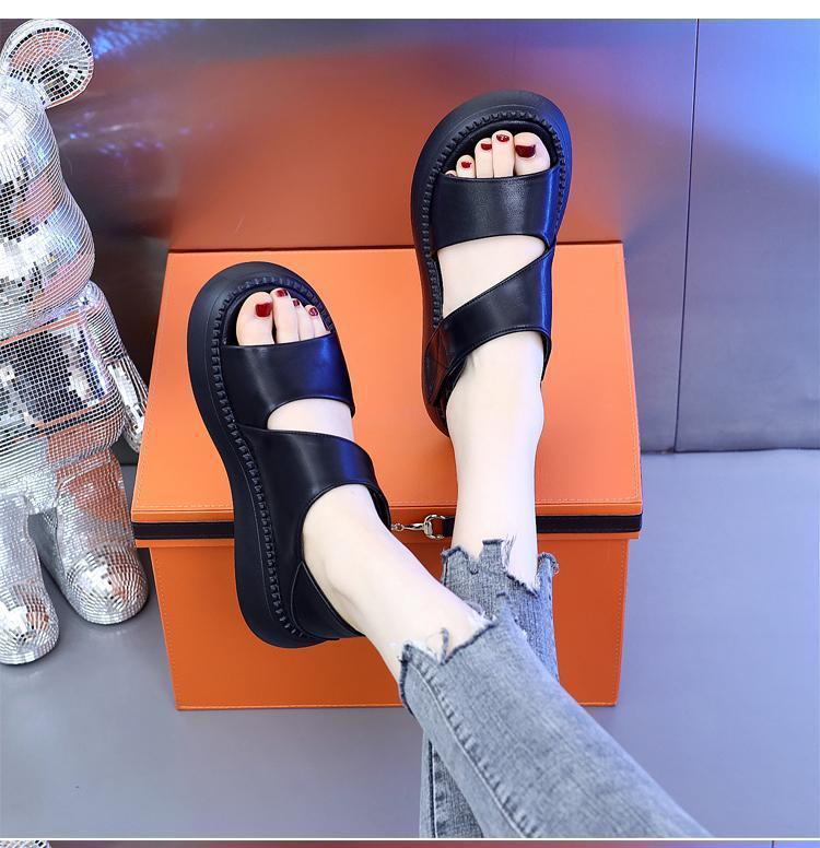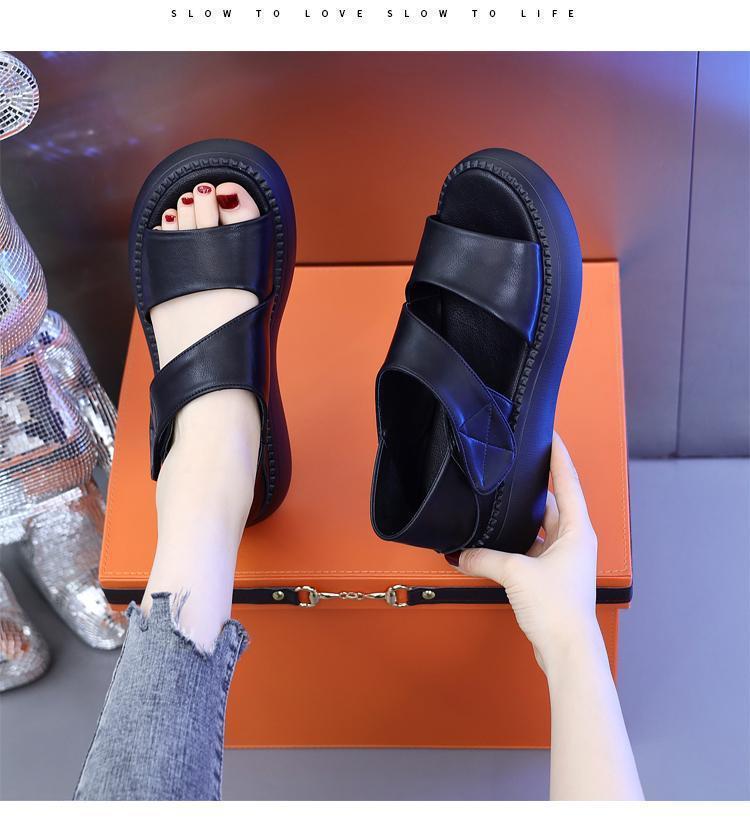 여성용 정품 가죽 로마 샌들 2025 새로운 플랫폼 밑창 두꺼운 밑창 슬림 캐주얼 부드러운 밑창 작은 향기로운 해변 신발스토어 가기