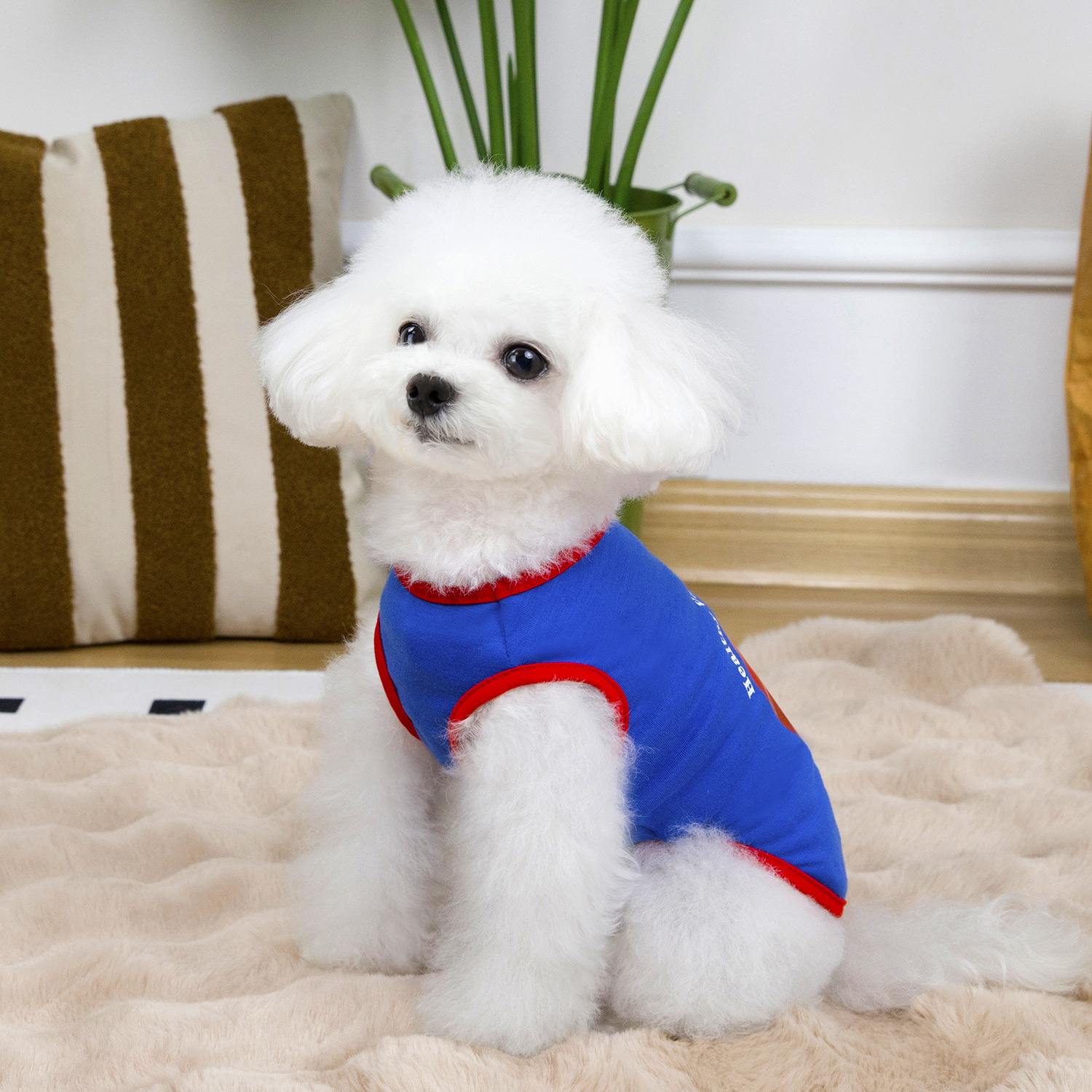 새로운 귀여운 만화 봄과 여름 애완 동물 조끼 작은 개 테디 VIP 옷 고양이 개 두 다리 옷