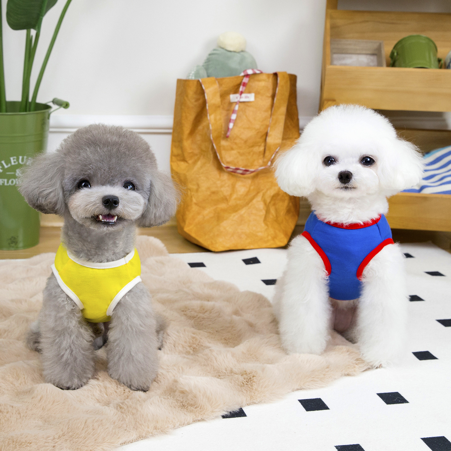 새로운 귀여운 만화 봄과 여름 애완 동물 조끼 작은 개 테디 VIP 옷 고양이 개 두 다리 옷스토어 가기