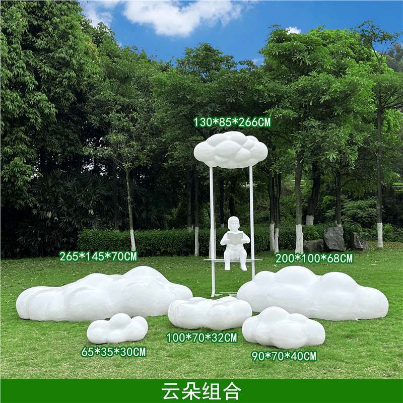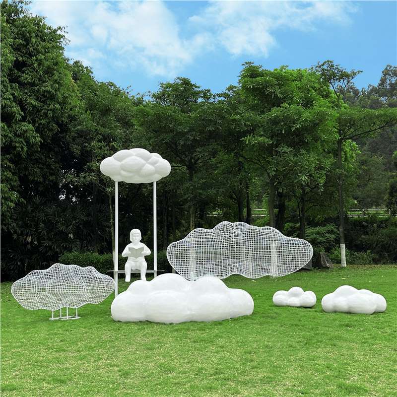 야외 유리 섬유 강화 플라스틱 구름 조각 공원 광장 명승지 잔디 장식 그물 빨간 펀치 카드 사진 공예 장식품스토어 가기
