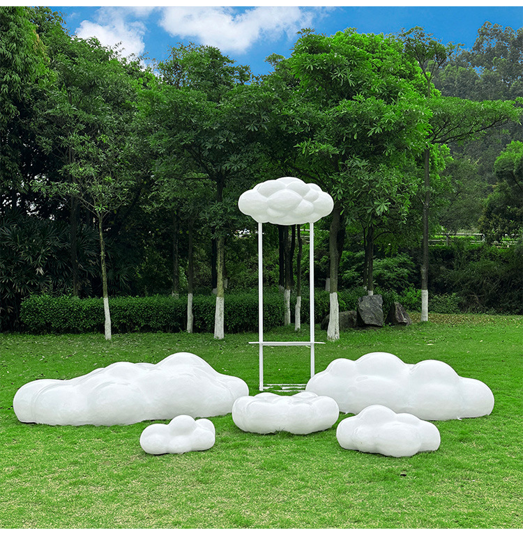 야외 유리 섬유 강화 플라스틱 구름 조각 공원 광장 명승지 잔디 장식 그물 빨간 펀치 카드 사진 공예 장식품
