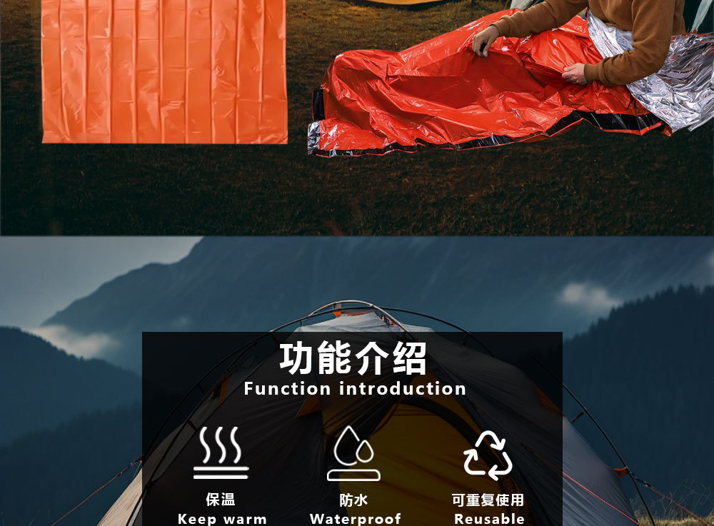 야외 필드 여행 다기능 비상 구명 절연 PE 알루미늄 슬리핑 백 반사 셀프 헬프 휴대용 텐트