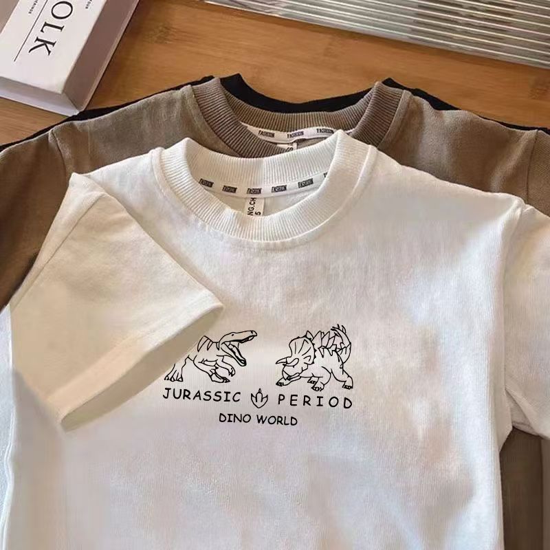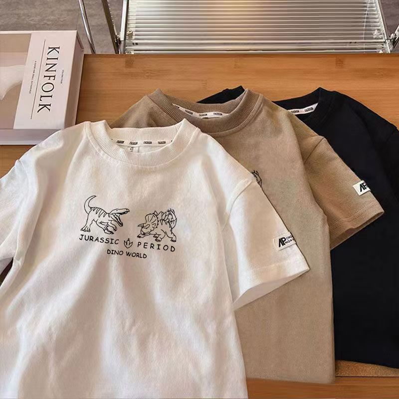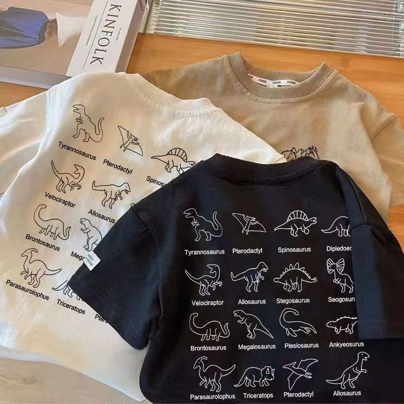 2025 신상 소년 여름 공룡 어린이 반팔 티셔츠 아기의 만화 얇은 올매치 캐주얼 탑 한국 스타일스토어 가기
